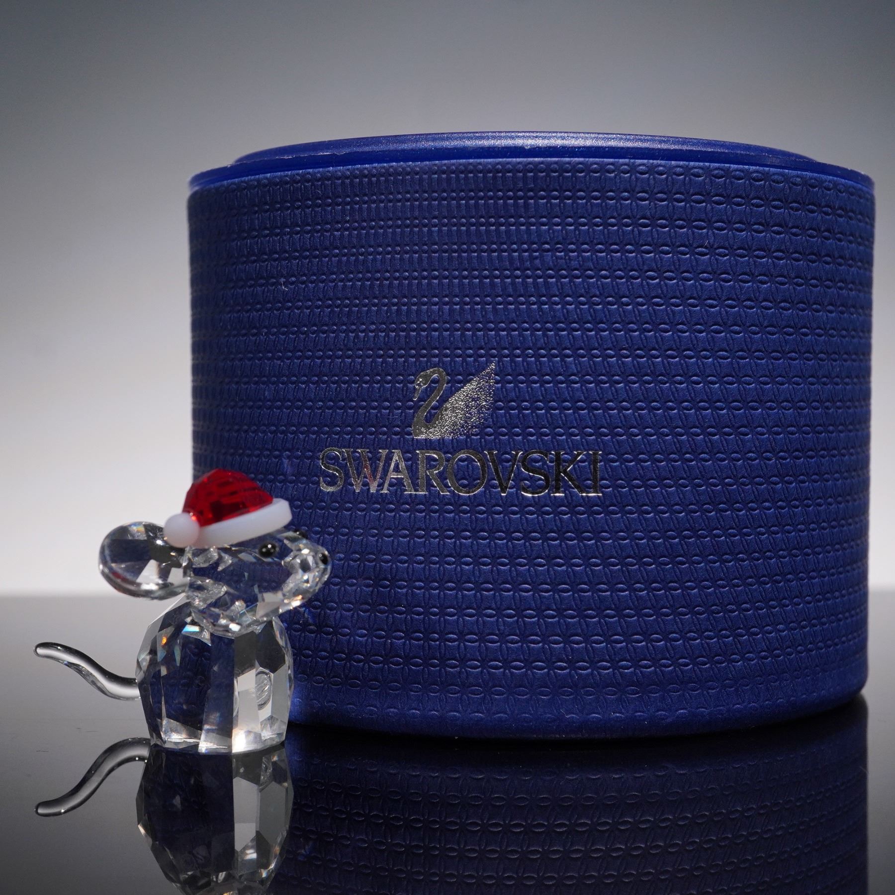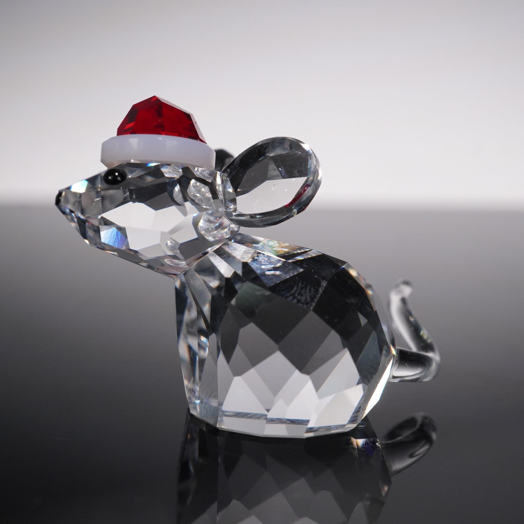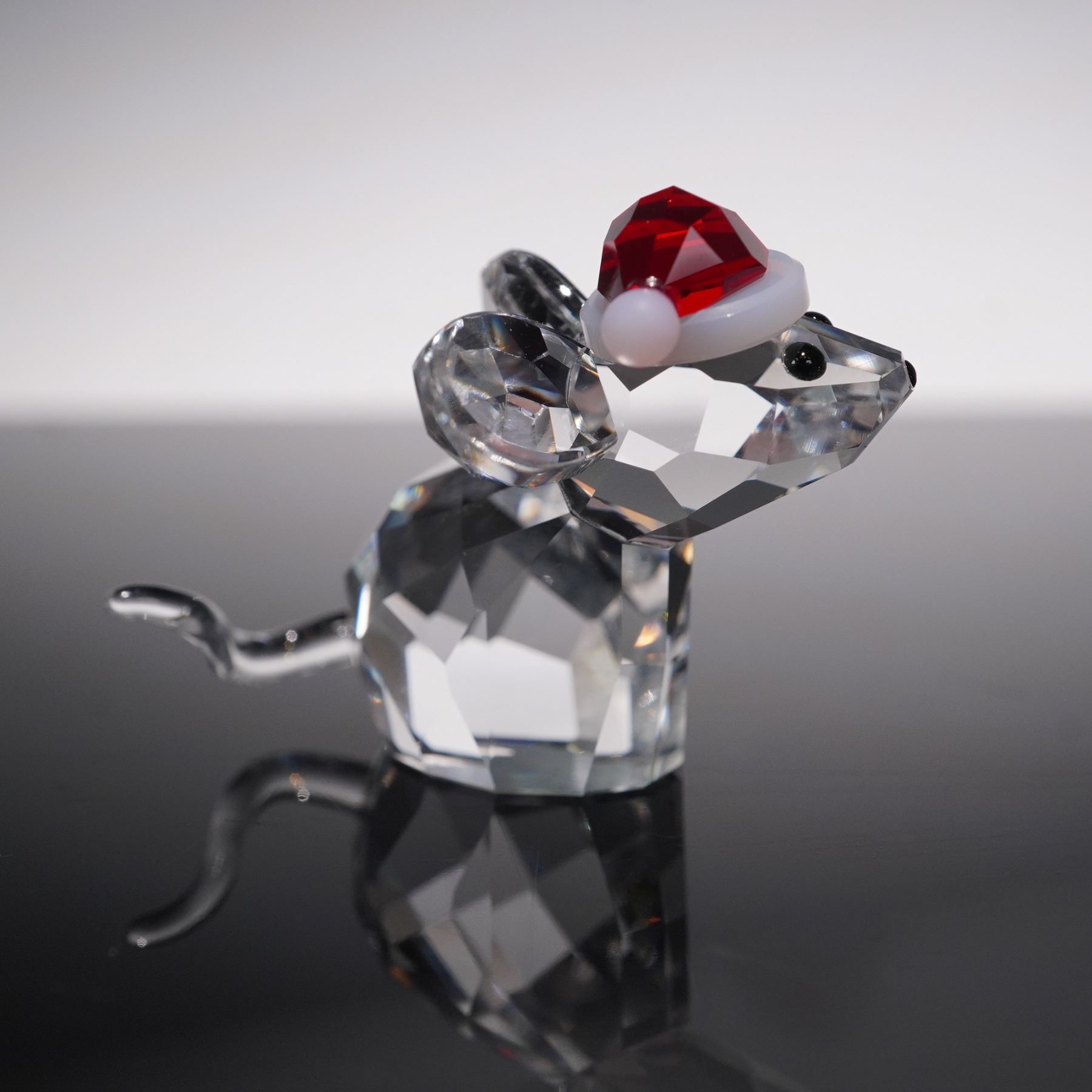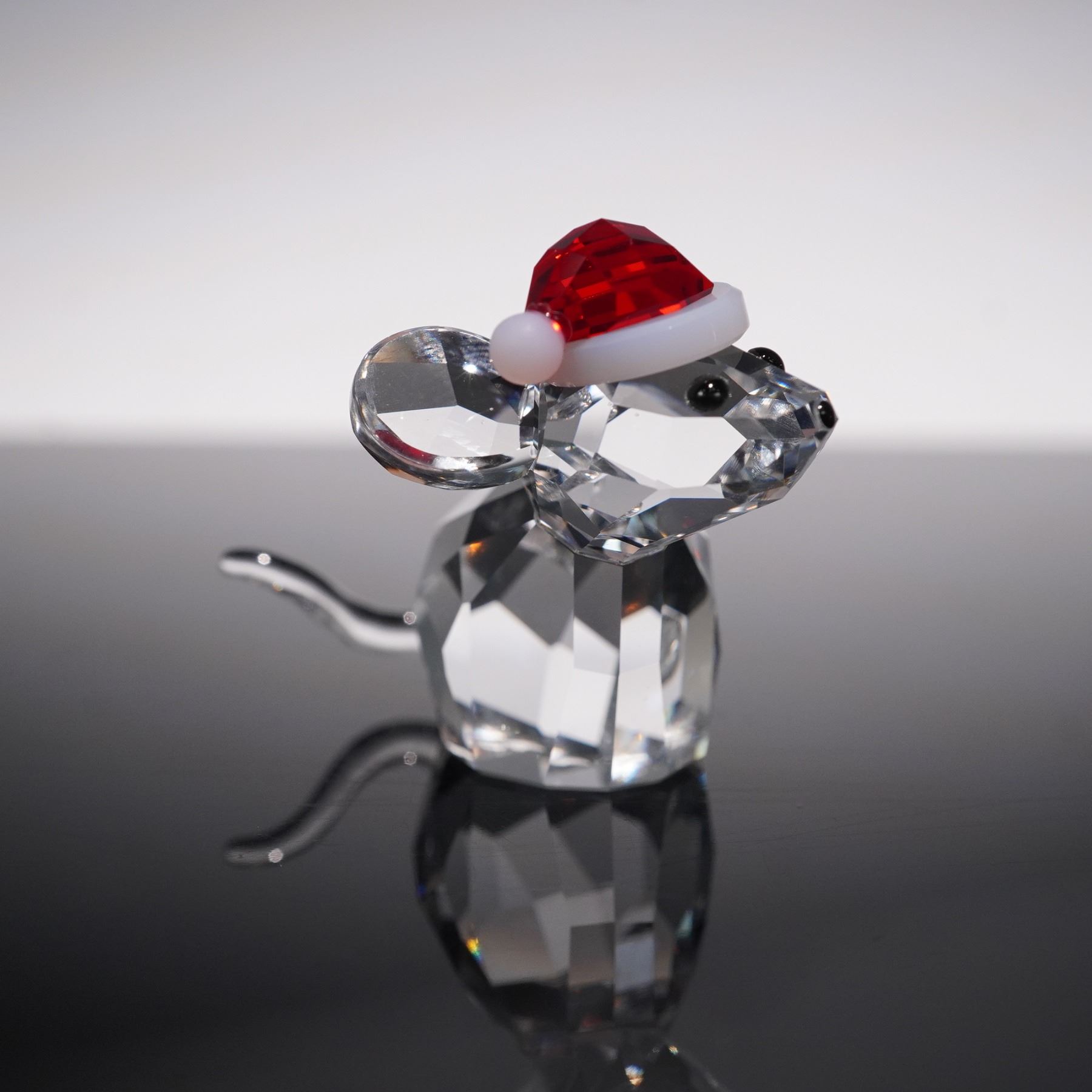 Swarovski Crystal Figurine, Mouse with Santa's Hat
