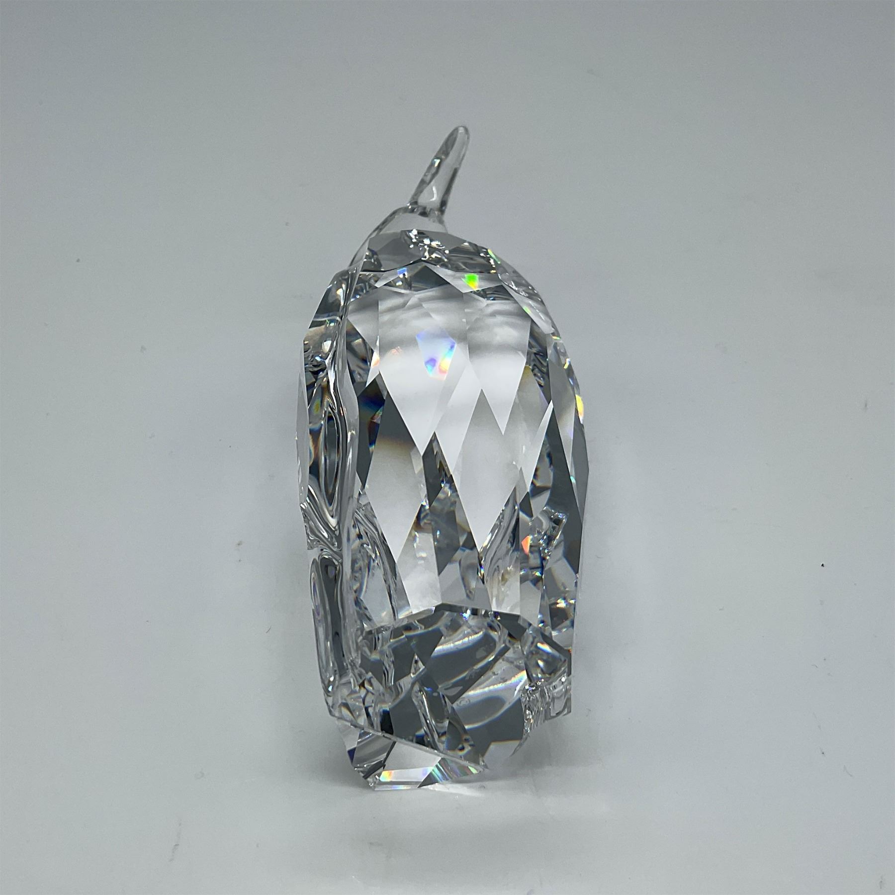 A stunning Swarovski crystal penguin figurine, featuring precision-cut facets that capture light beautifully. The figurine is intricately designed, showcasing the exceptional craftsmanship Swarovski is known for. This piece was designed as part of the iconic Swarovski collection and comes with its original blue box.