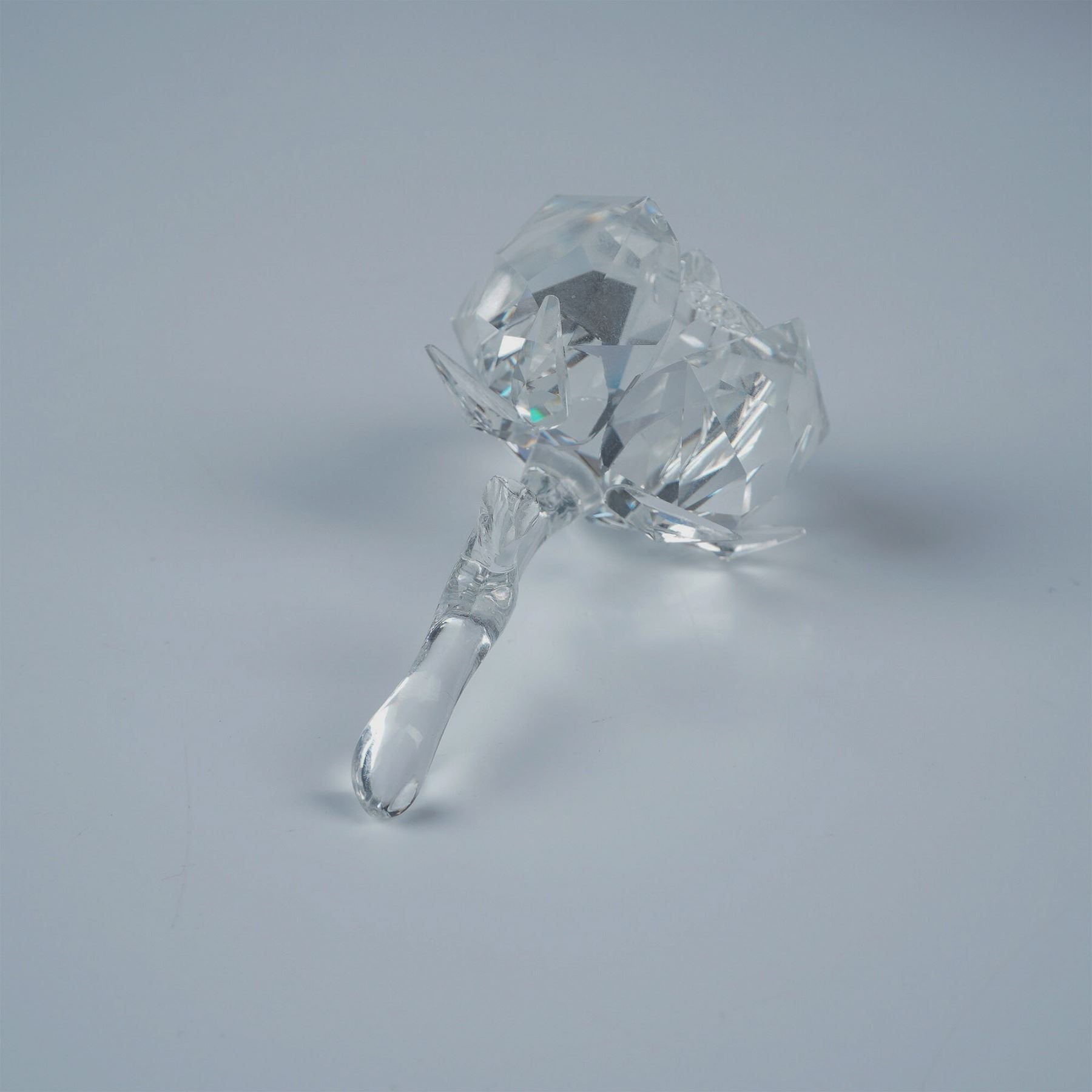 This Swarovski crystal figurine features a delicately crafted rose, part of the Exquisite Accents collection before being reclassified under the In the Secret Garden theme. Made from clear faceted crystal, the design captures the intricate beauty of a blooming rose with a gracefully sculpted stem and petals. The piece bears the Swarovski marking, ensuring authenticity and craftsmanship. This item has its original box.