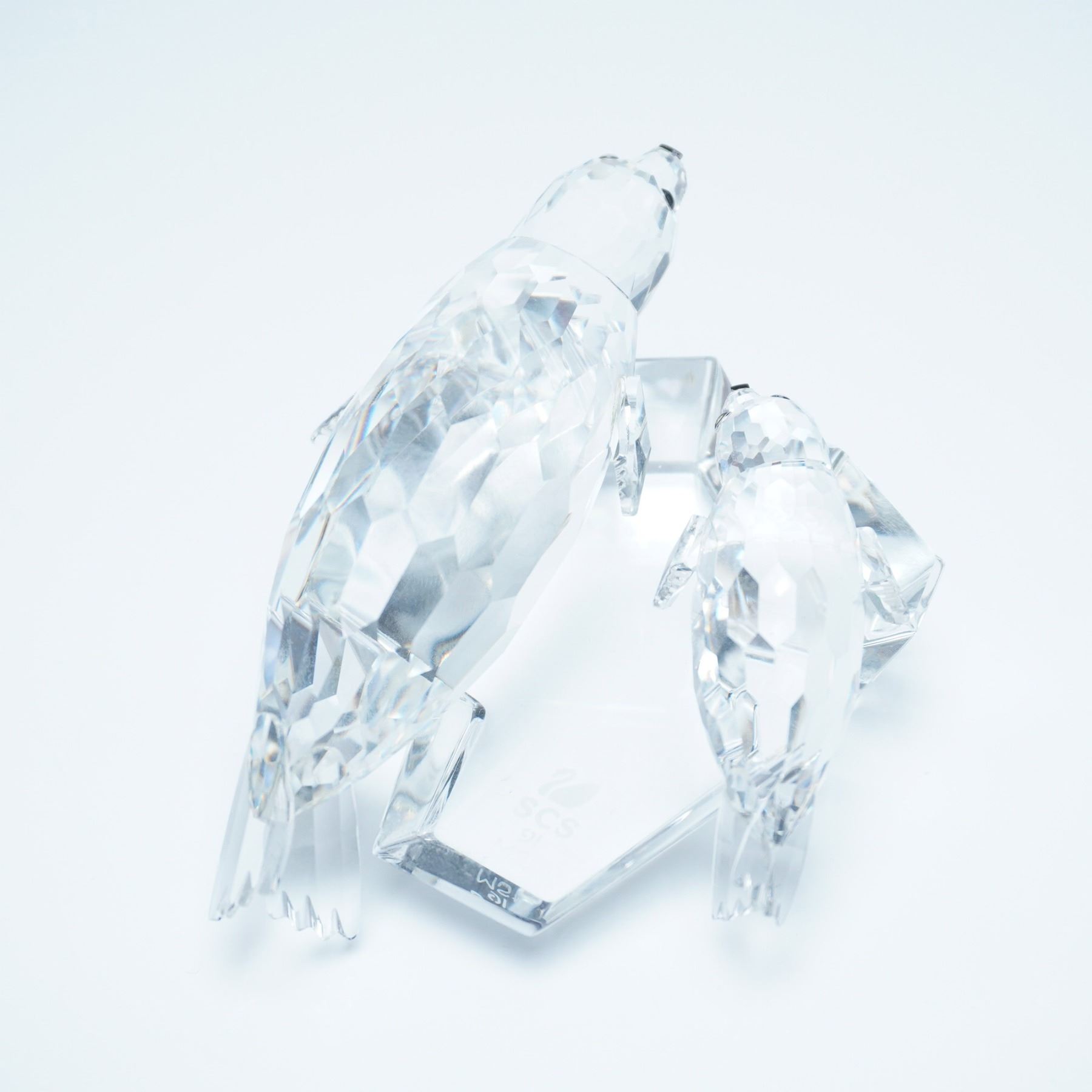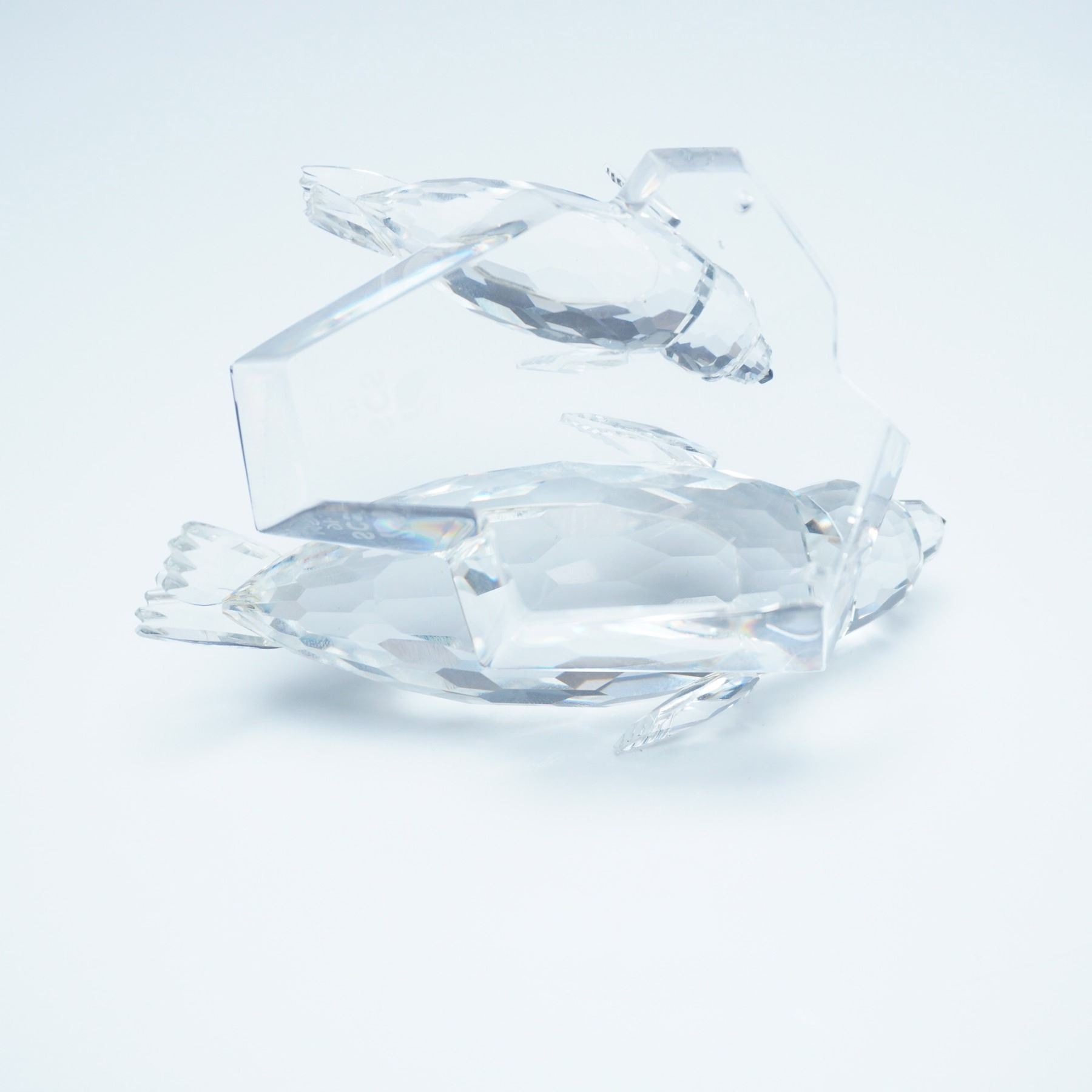 Released in 1991 as the second installment in the 'Mother and Child' series, this Swarovski crystal figurine was designed by Michael Stamey. This exquisite piece features a fully cut crystal mother seal and pup, both depicted in serene repose atop a faceted clear crystal ice floe, capturing the beauty of nature with remarkable precision. A sought-after annual edition, this collectible showcases Swarovski's signature craftsmanship and timeless elegance, making it a treasured addition to any Swarovski collection. 158872.
