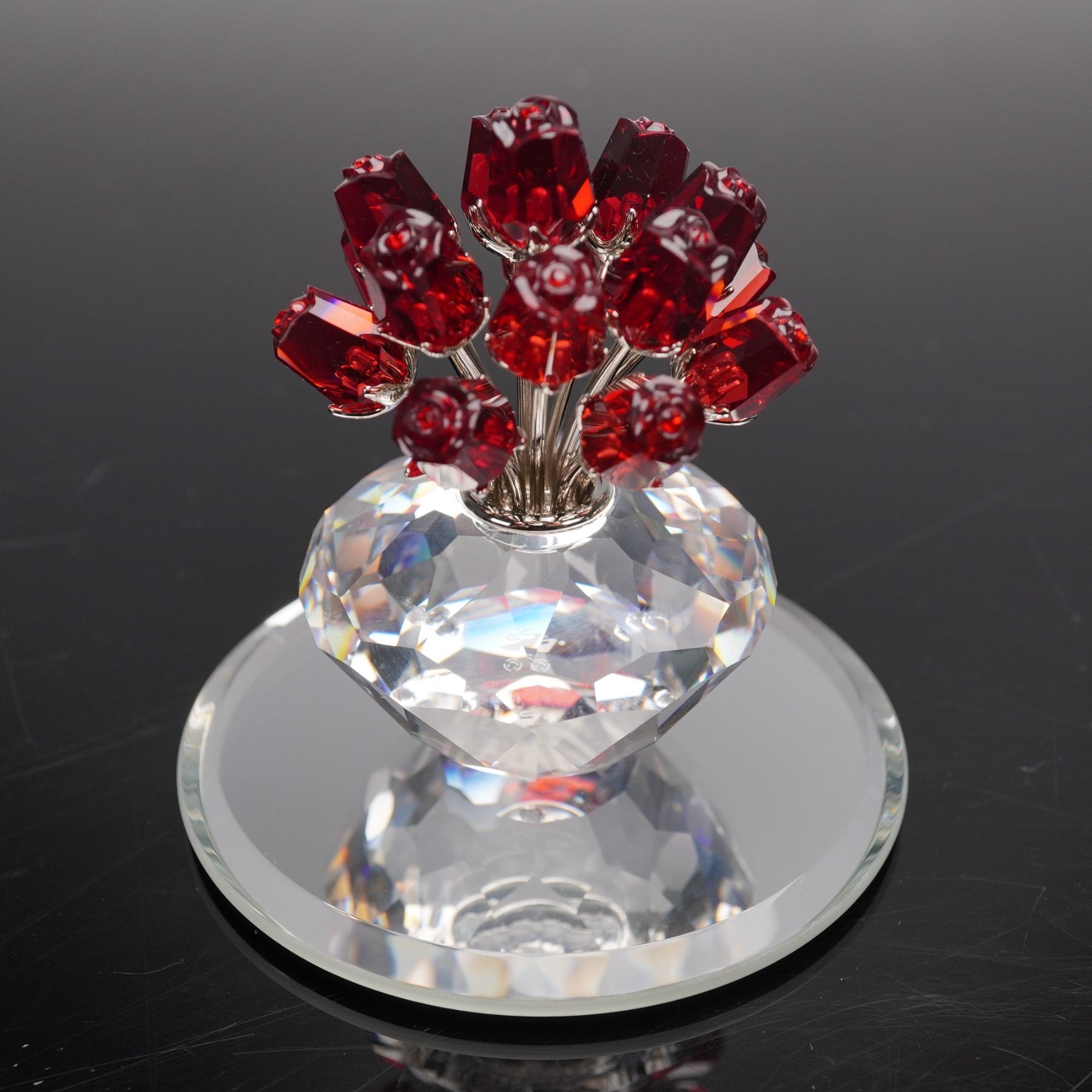 Swarovski Crystal Figurine and Base, Vase of Red Roses 283394