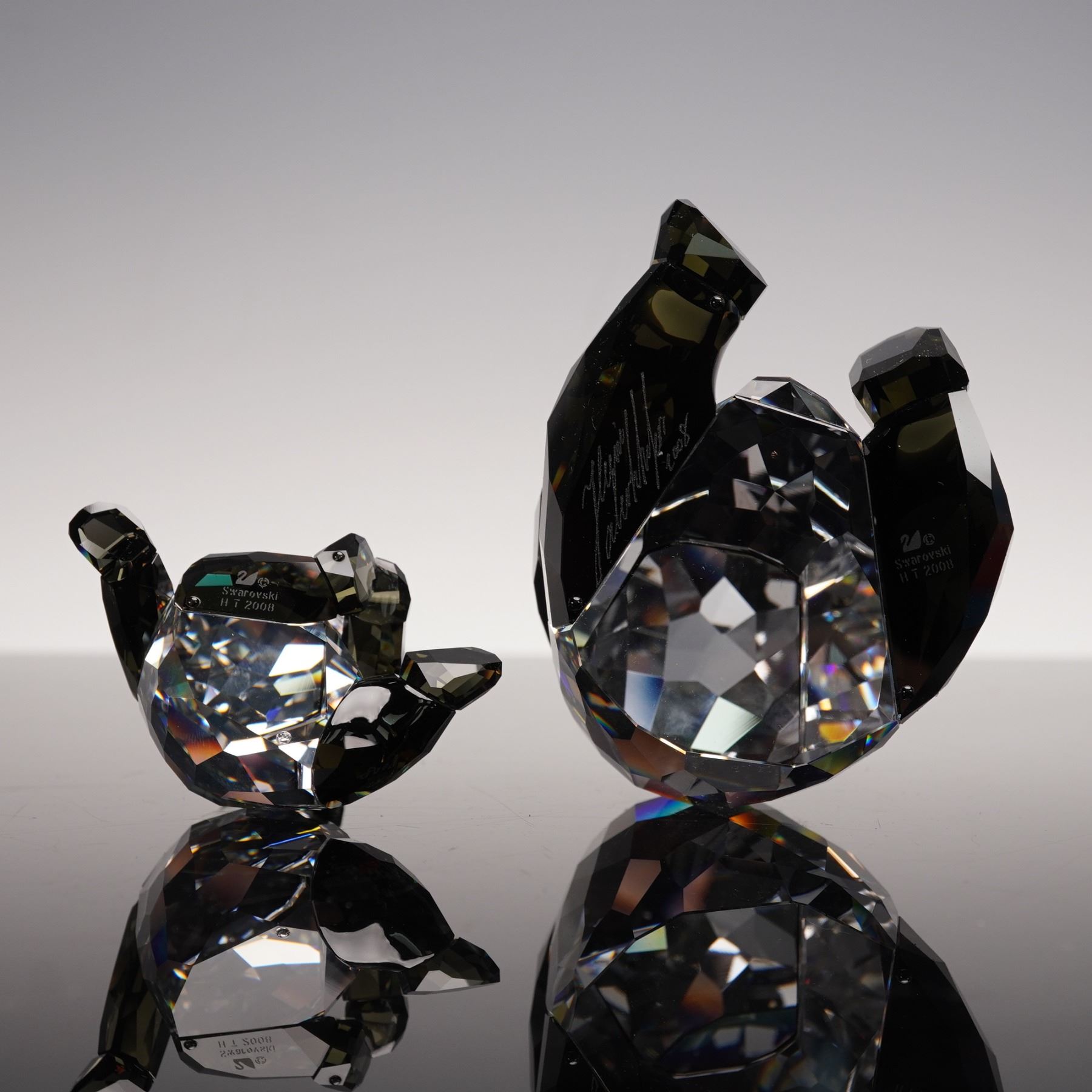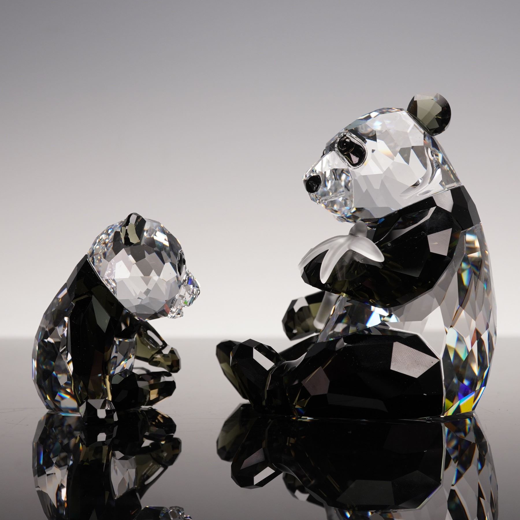 Swarovski Crystal Figurines, Panda Mother with Baby, Signed