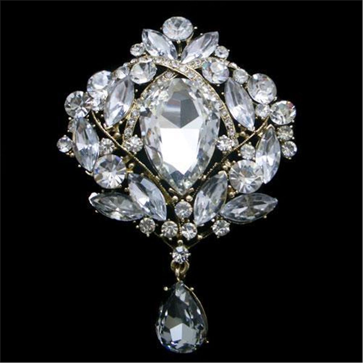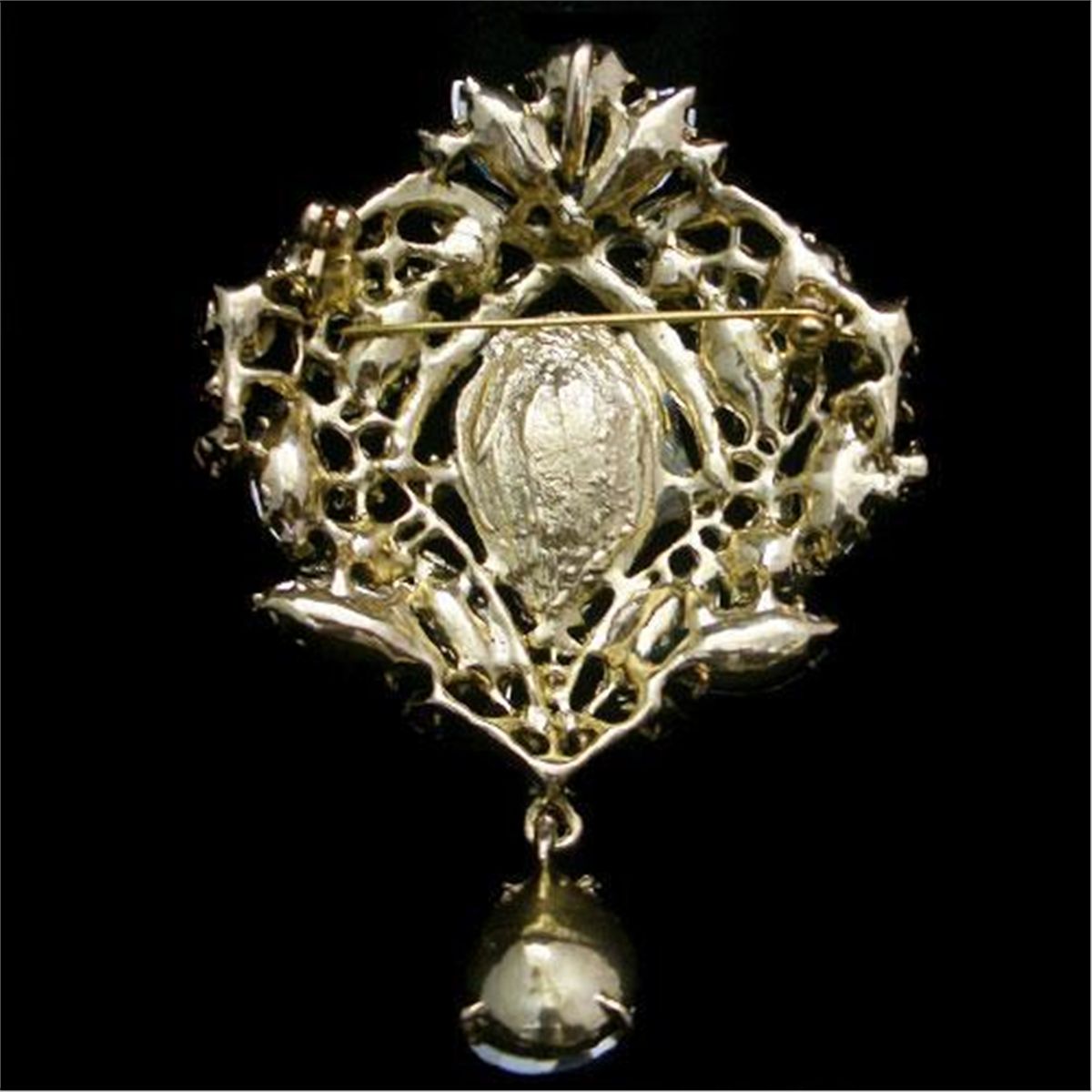 Swarovski Crystal Flower Pendant Brooch Pin, measures approx 2.75 in length by 2.25 width mwf2057a