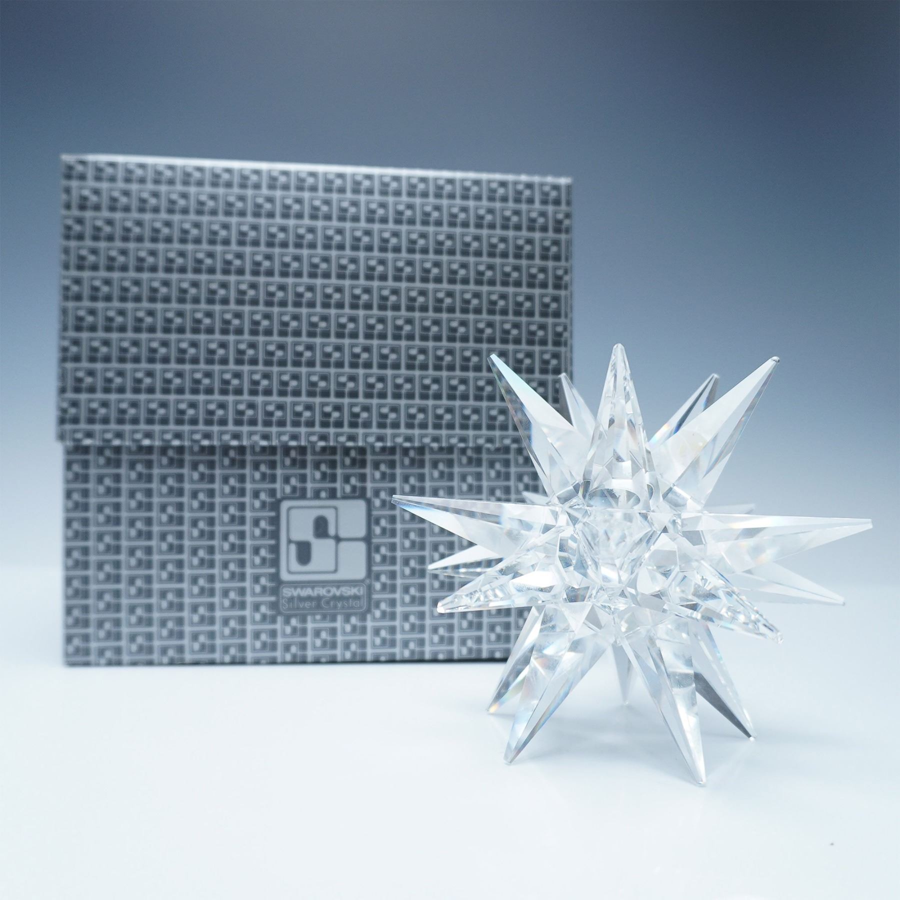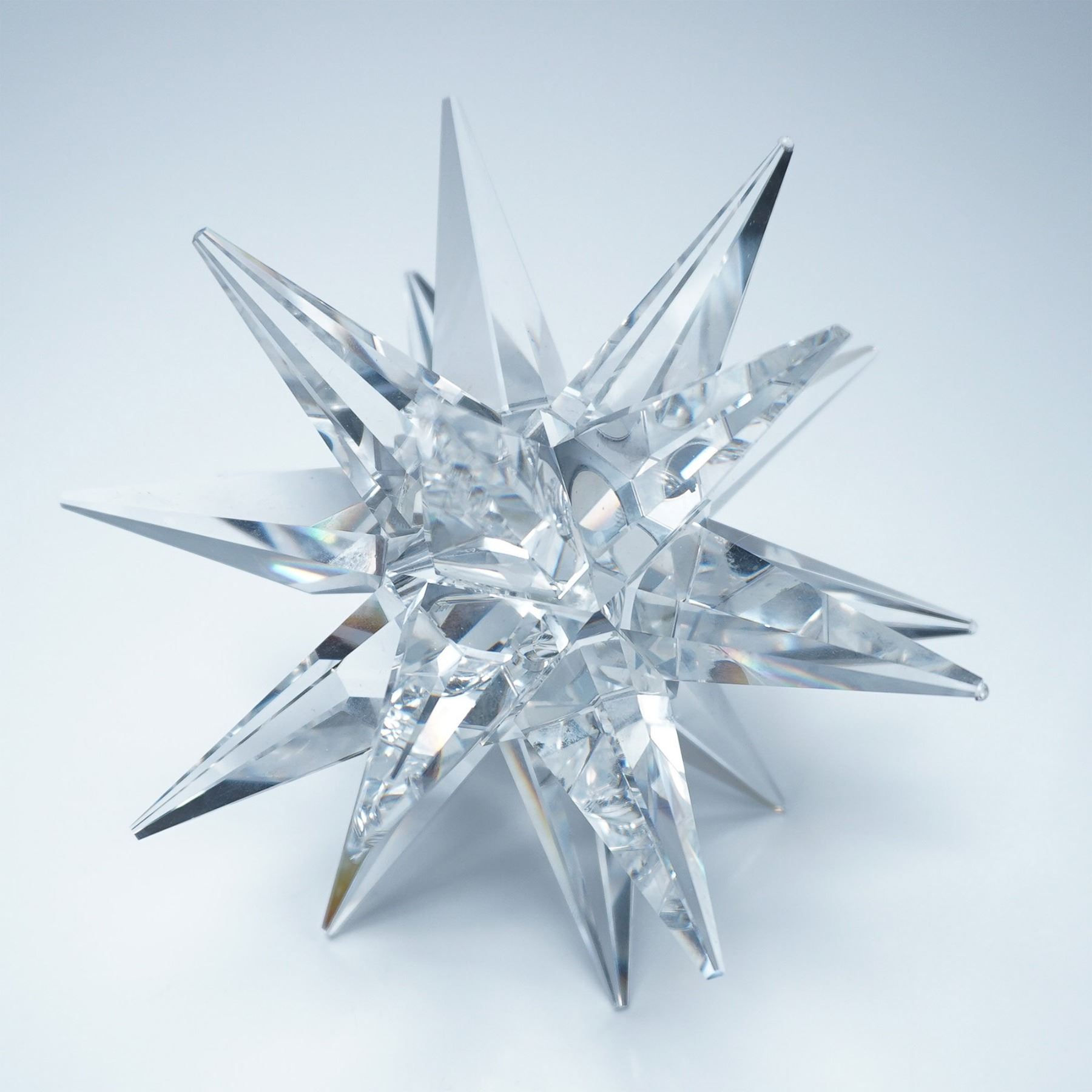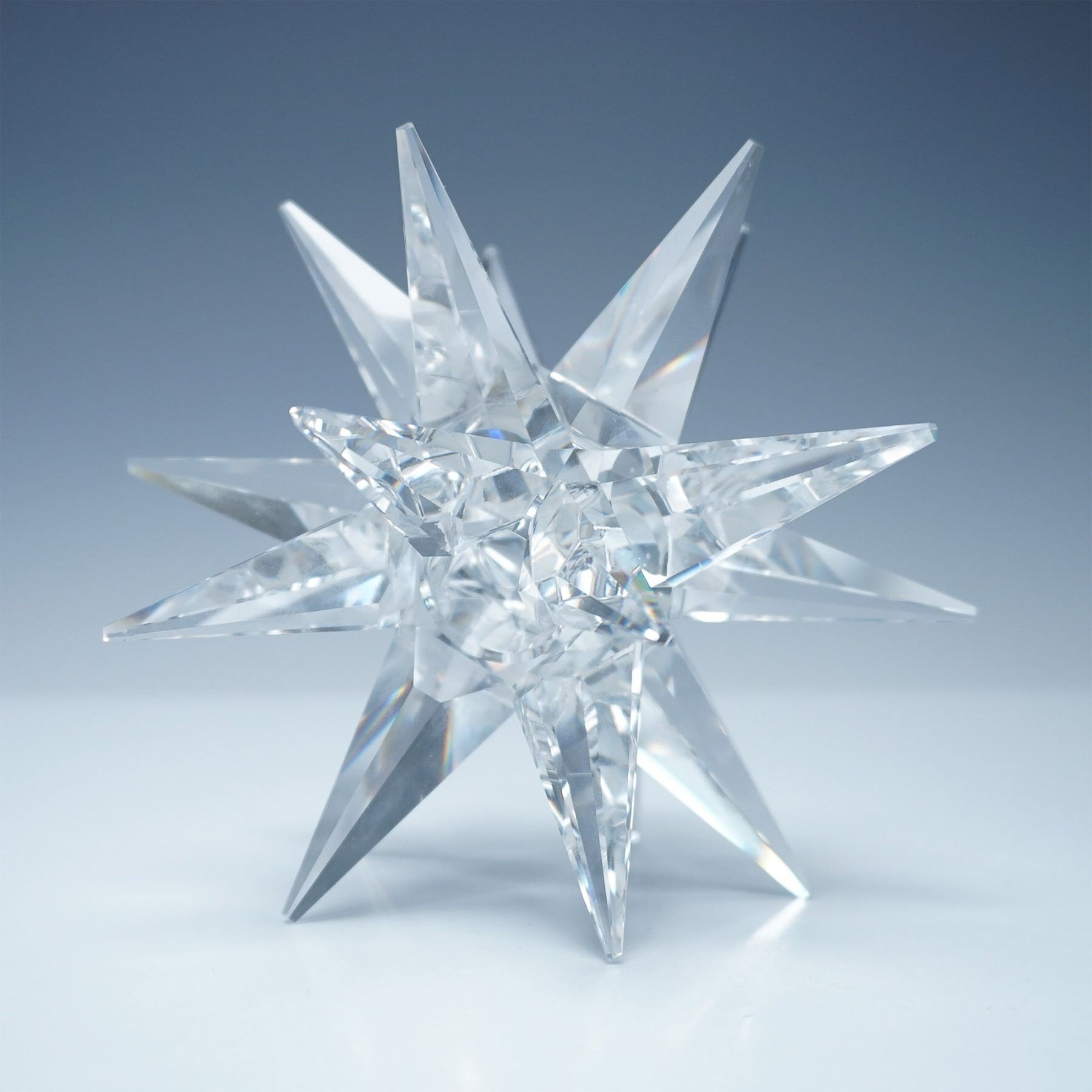 A dazzling Swarovski crystal large star candleholder featuring a multi-faceted design that radiates brilliance from every angle. This intricate piece, crafted with precision, showcases the brand’s signature clarity and sparkle. Complete with its original box, this collectible candleholder reflects light beautifully, adding elegance to any space. The piece is marked with the Swarovski logo, ensuring authenticity.