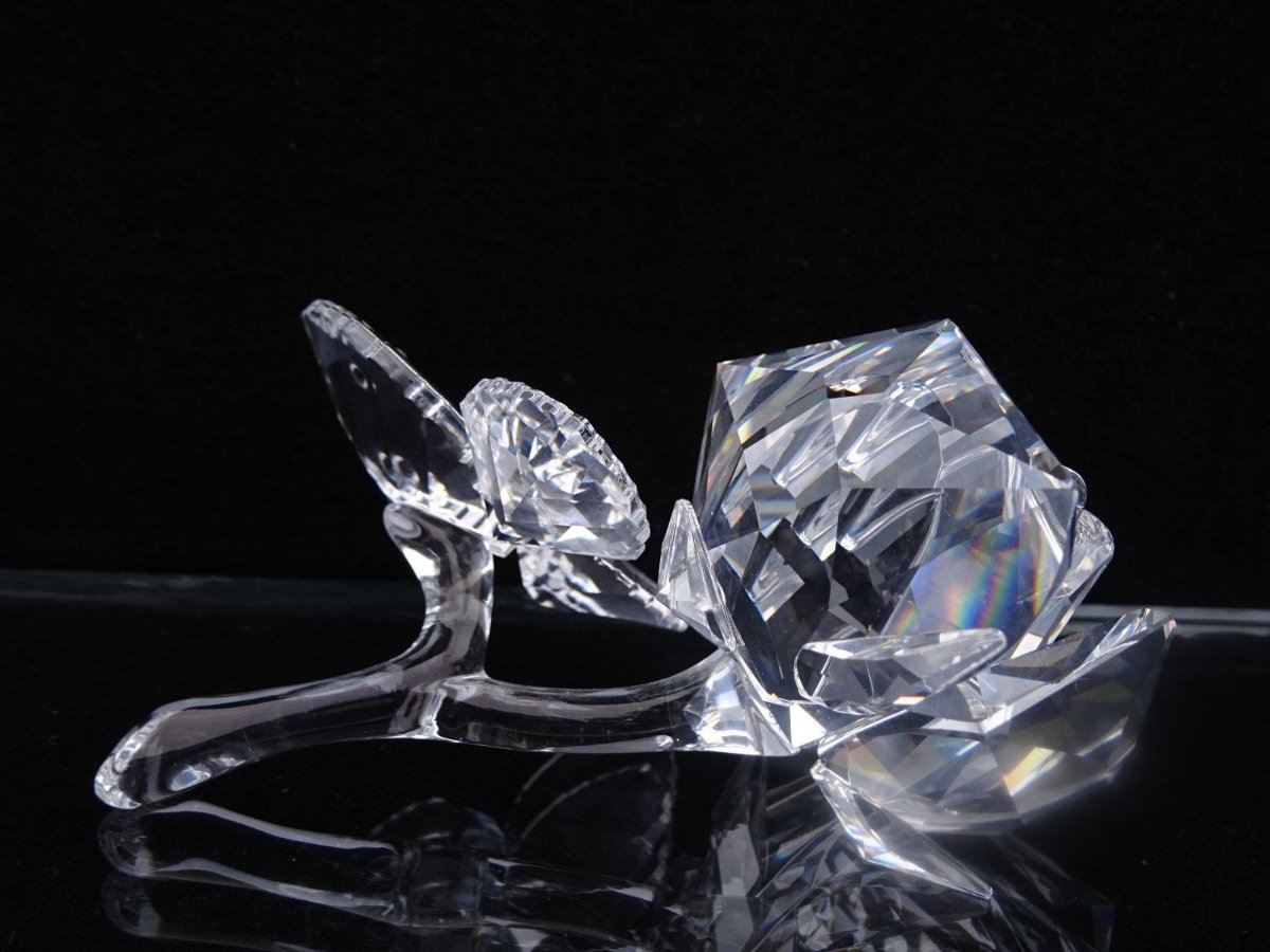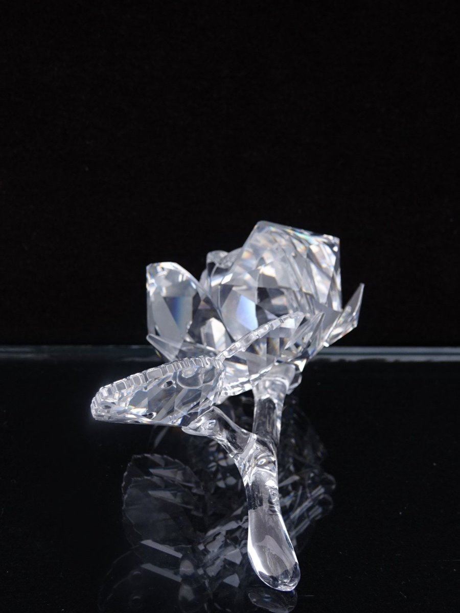 Swarovski Crystal "The Rose" Flower Figurine w/ Original Box. 7478 000 001 ~ Issued In 1993 ~ Retired In 2007 ~ Designed By Michael Stamey. The figurine is in MINT CONDITION with no chips, cracks or scratches, the acid-etched Swarovski swan mark is clearly visible on this piece. It stands 1 5/8" tall, 3 1/2" in length, 1 3/4" wide.