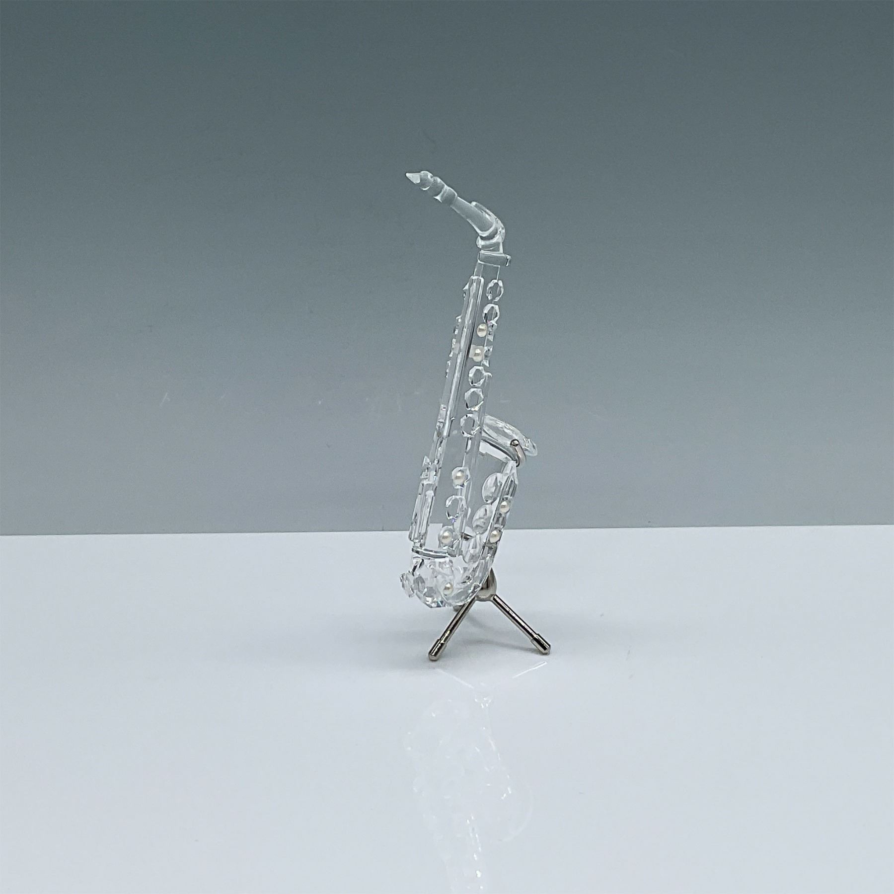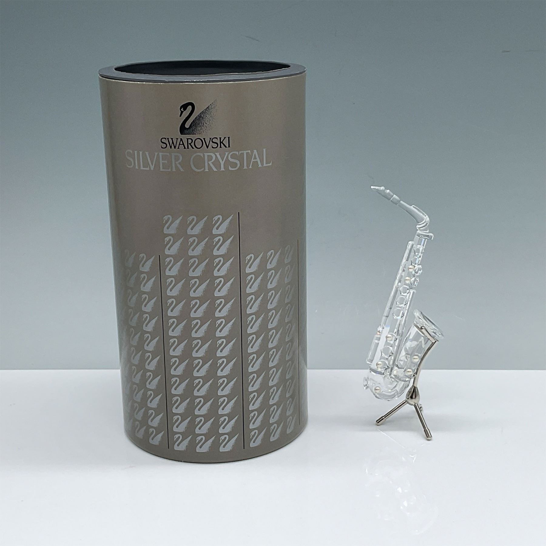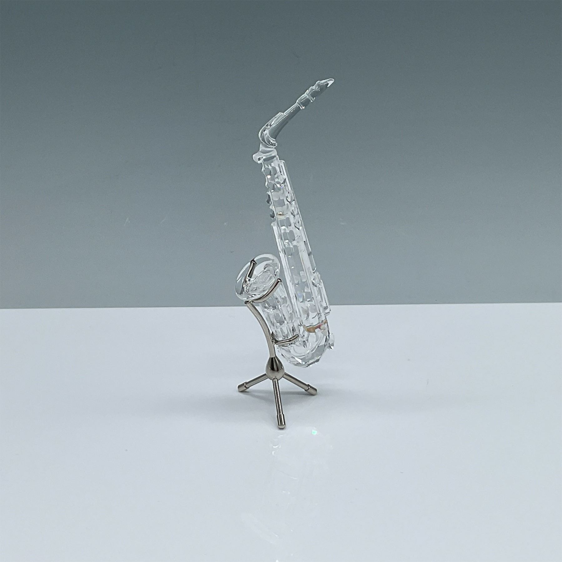 This exquisite Swarovski Crystal Saxophone Figurine is a stunning example of the brand's craftsmanship and precision. Designed in Austria, this miniature saxophone is intricately detailed, featuring faceted clear crystal that shimmers brilliantly under light. The figurine is accompanied by a sleek metal stand, allowing it to be displayed elegantly on a shelf or desk. It is part of Swarovski's collectible miniatures series, showcasing the artistry and quality that have made Swarovski a world-renowned name in crystal collectibles. 211728. This item has its original box.