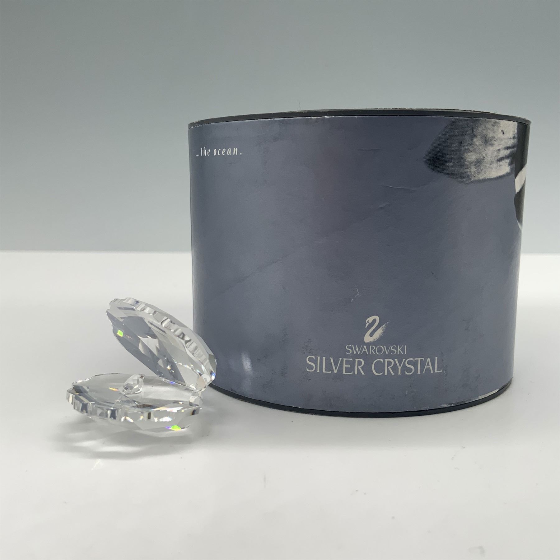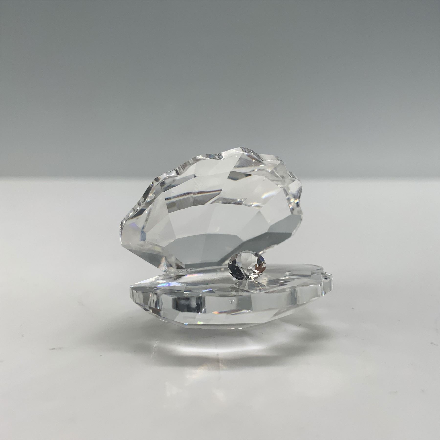 This retired Swarovski crystal Shell with Pearl figurine was part of the "South Sea" theme group and later included in the "Aquatic Worlds" collection. It was also featured in the "Maritime Trio" alongside the conch and starfish. The piece showcases a sparkling open clam shell crafted from faceted clear crystal, with a beautiful crystal chaton representing the pearl nestled inside. Designed by Michael Stamey, it was introduced in 1995 and retired in 2011. It comes complete with its original box, making it a desirable addition for collectors. Swarovski marking.