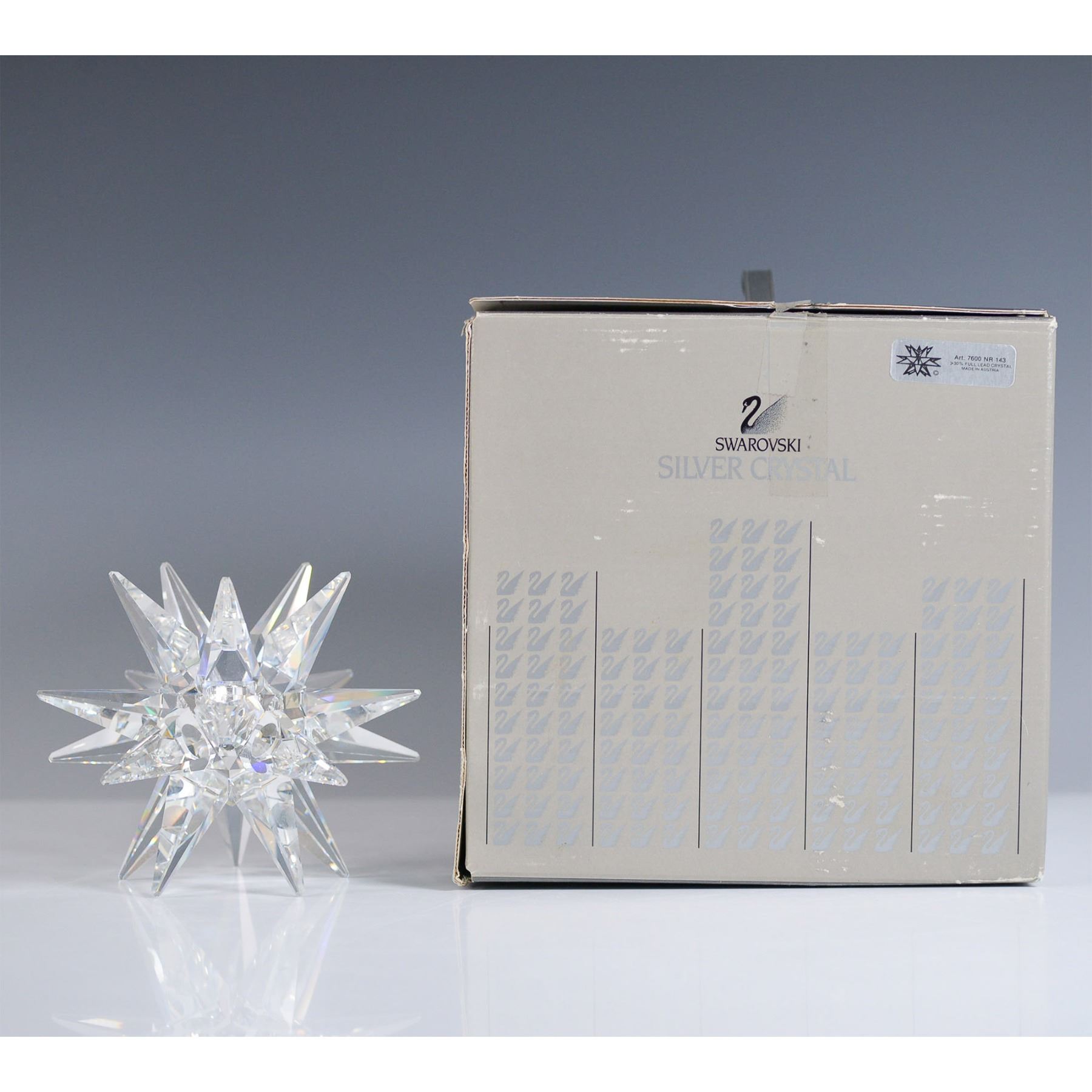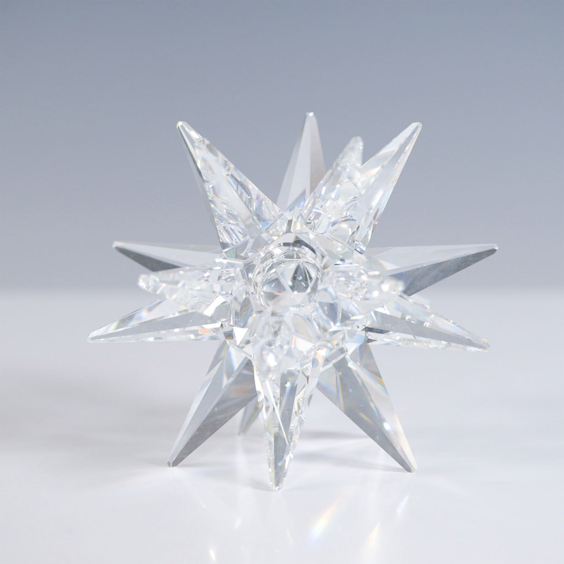 A stunning Swarovski Crystal Star Candleholder, designed to hold one candle. This exquisite piece is part of the "Our Candleholders" theme, featuring a striking multi-point star design that captures and reflects light beautifully. Crafted with precision from the finest Swarovski crystal, it showcases exceptional clarity and brilliance. The piece bears the Swarovski acid mark, ensuring authenticity. Includes original box.