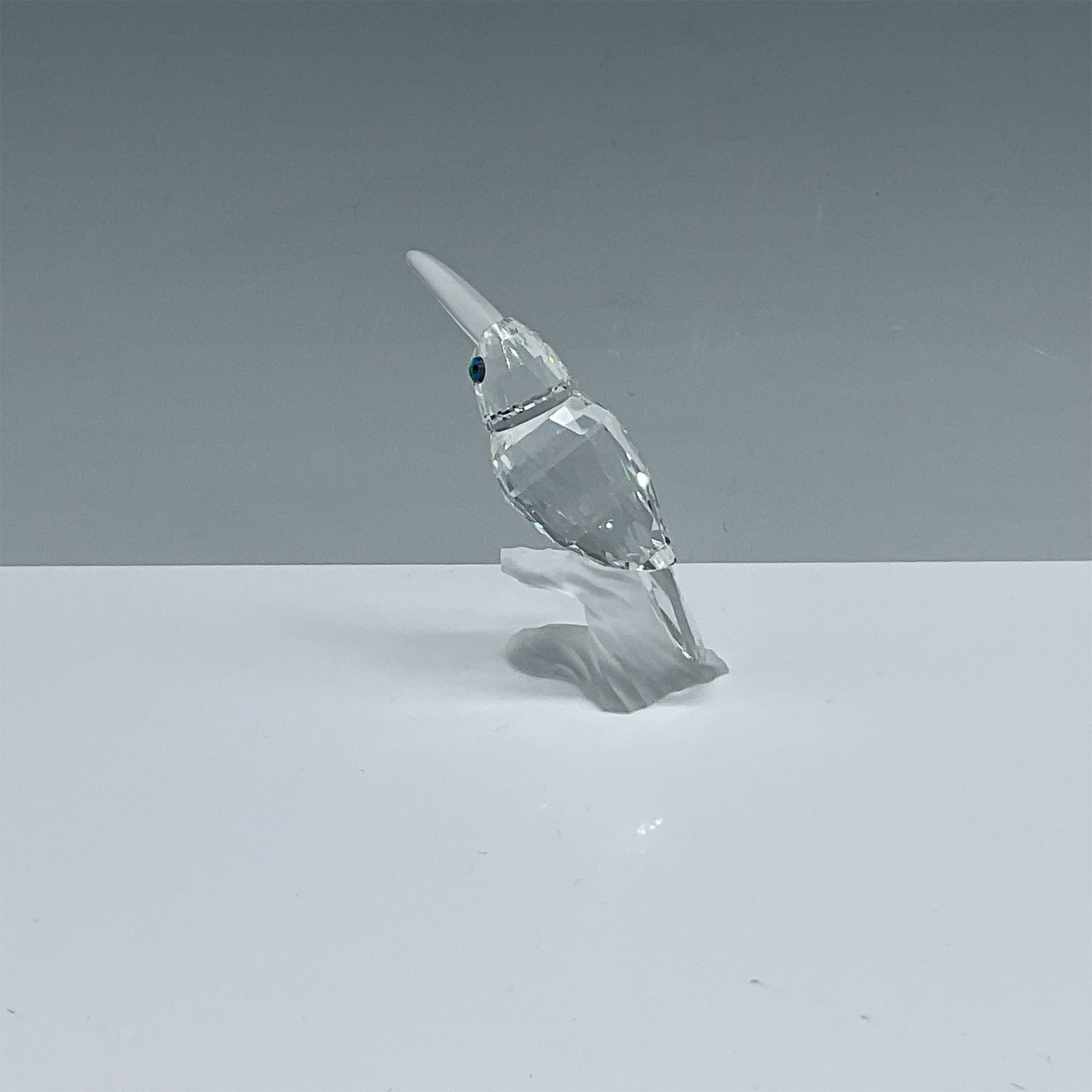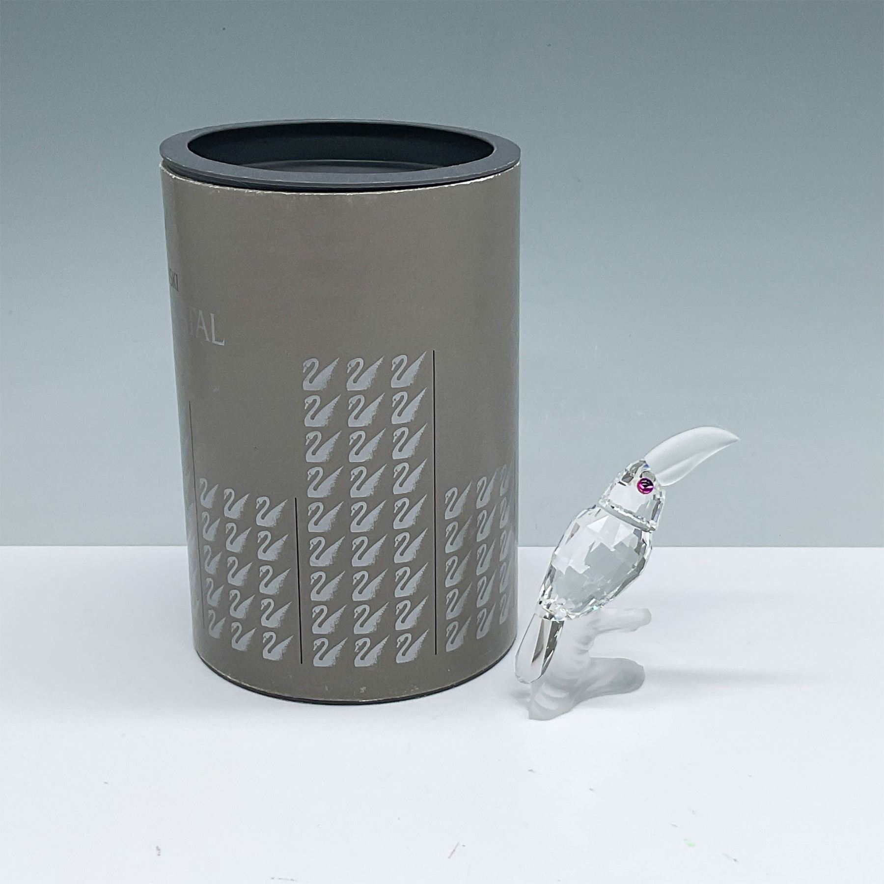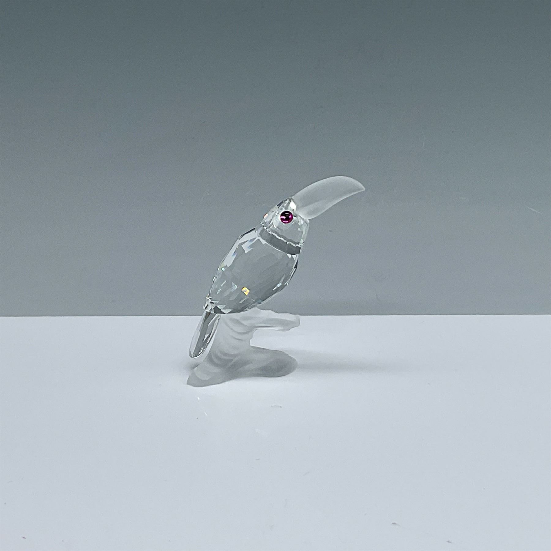 This particular figurine showcases a stunning toucan, its vibrant beak and delicate plumage intricately crafted from clear and frosted Swarovski crystal. The design captures the elegance and character of the tropical bird, with its striking use of light and color. 7621 000 002.
