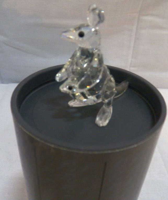 Swarovski Silver Lead Crystal MOTHER KANGAROO w/BABY JOEY Figurine Measures approximately 2-1/4" high. Signature swan mark on the bottom of the left foot