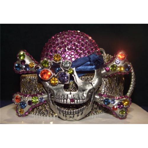 <tr><td>Title:Swarovski Multi Color Pirate Skull Belt Buckle</td></tr>