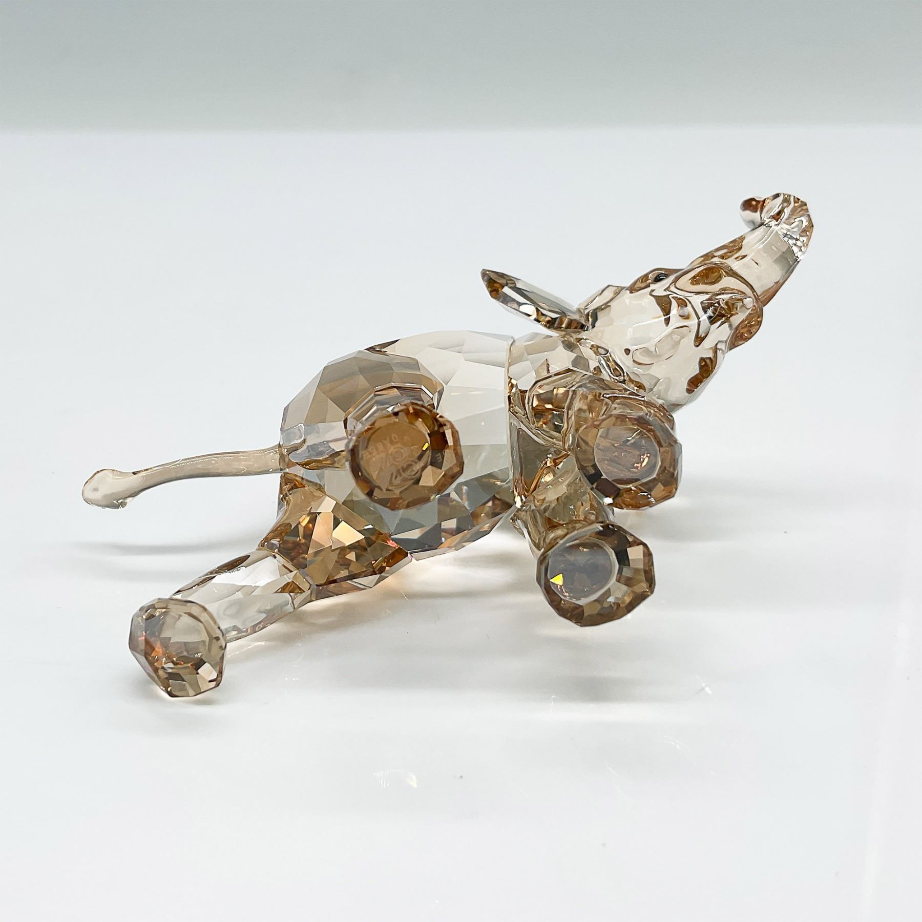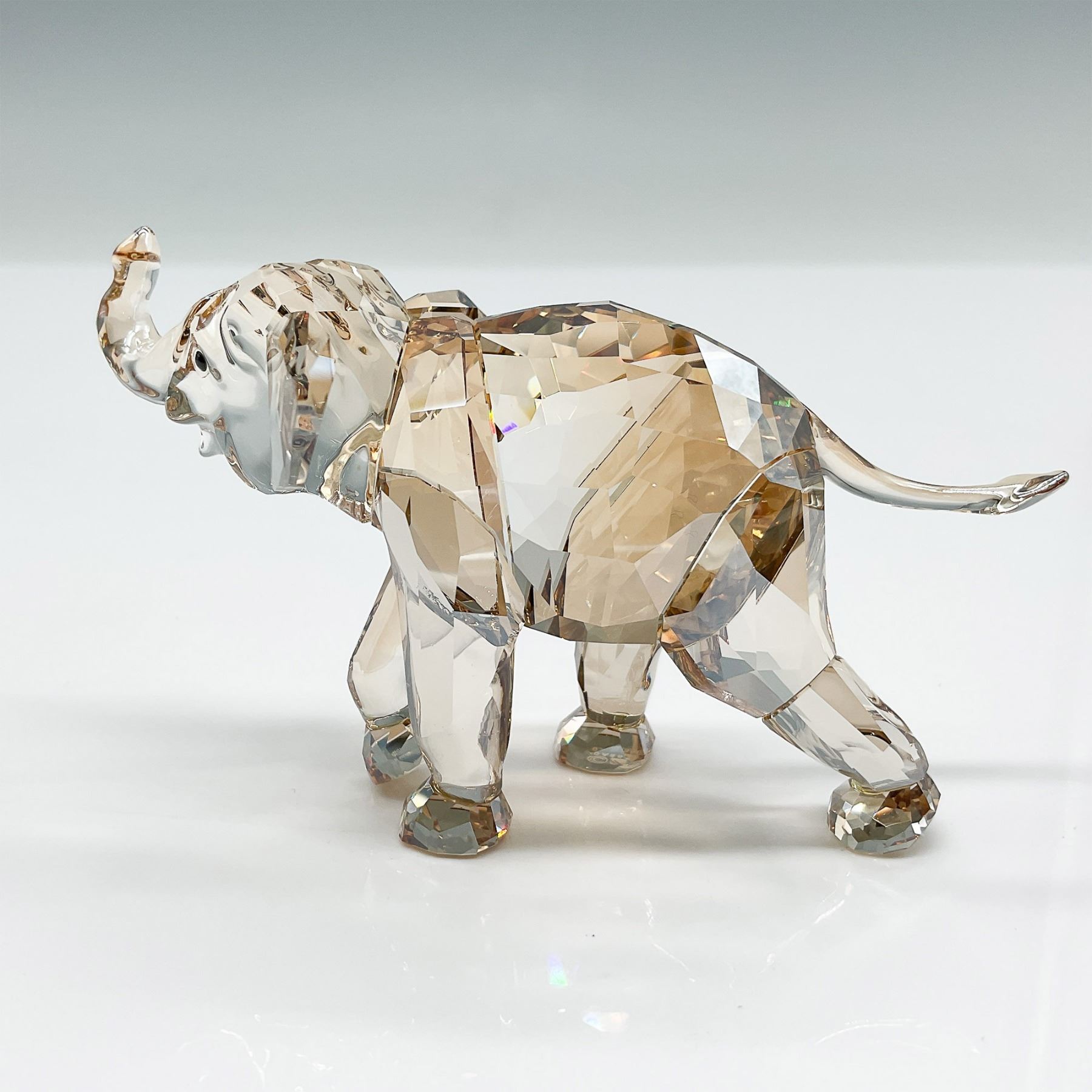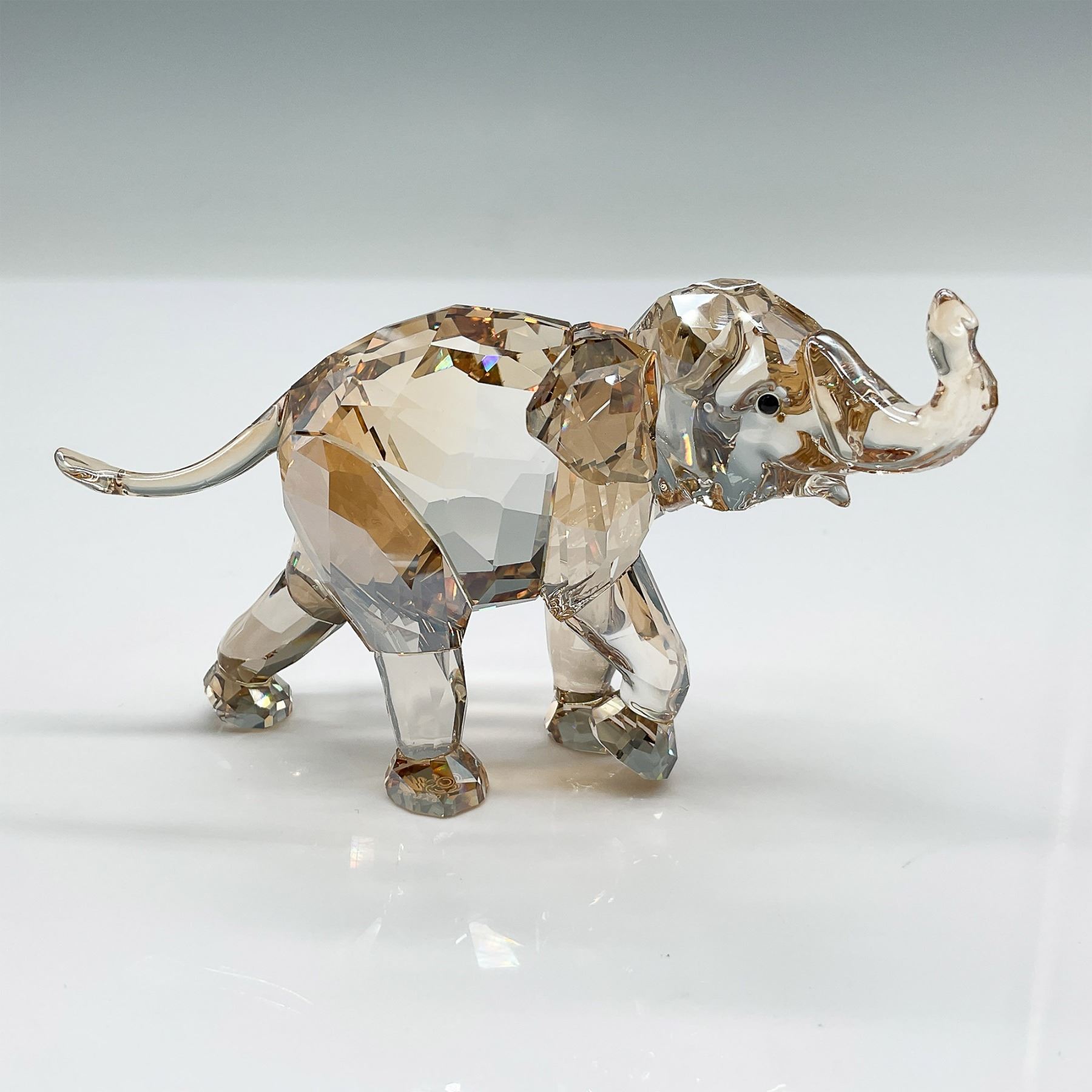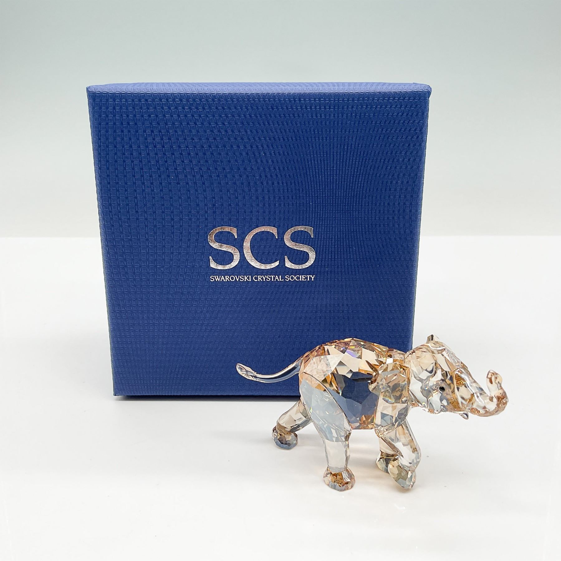 Presenting the Swarovski SCS Elephant Esperanza, a stunning crystal figurine released exclusively for the Swarovski Crystal Society (SCS) in 2013. Designed by Thomas Feichtner, this exquisite piece showcases a combination of clear and golden-hued faceted crystal, capturing the elegance and strength of the majestic elephant. Part of the SCS African Inspiration collection, Esperanza symbolizes wisdom, longevity, and prosperity. This collectible figurine features a dynamic pose with an upturned trunk, representing good luck. Includes the original SCS box. 1142862.