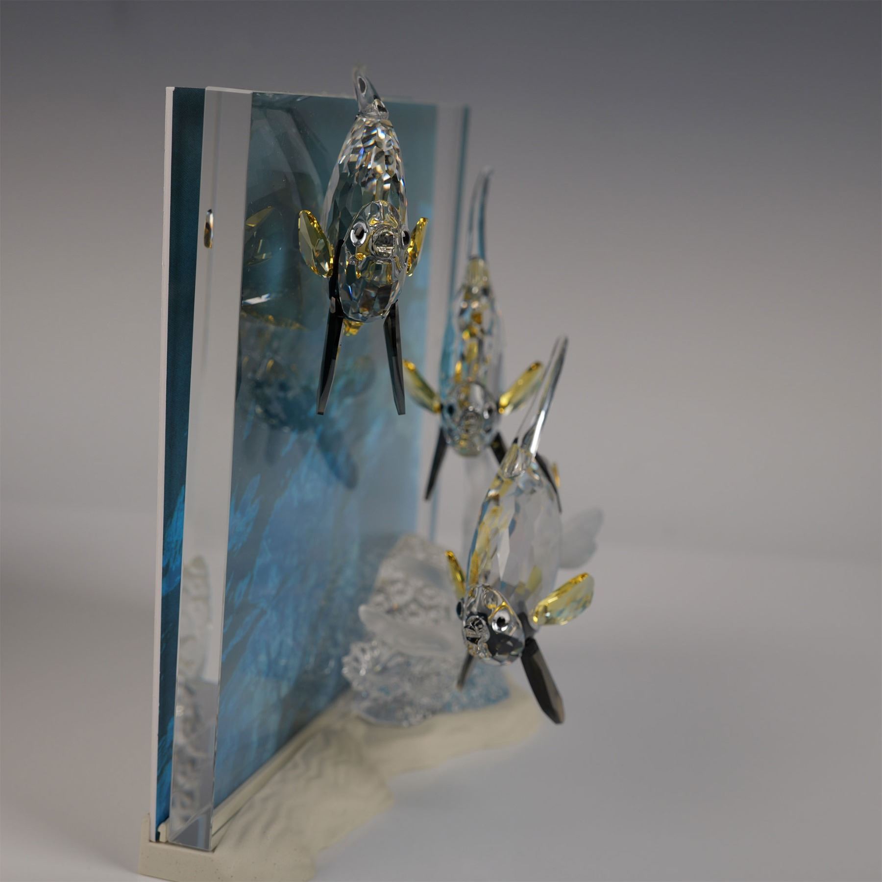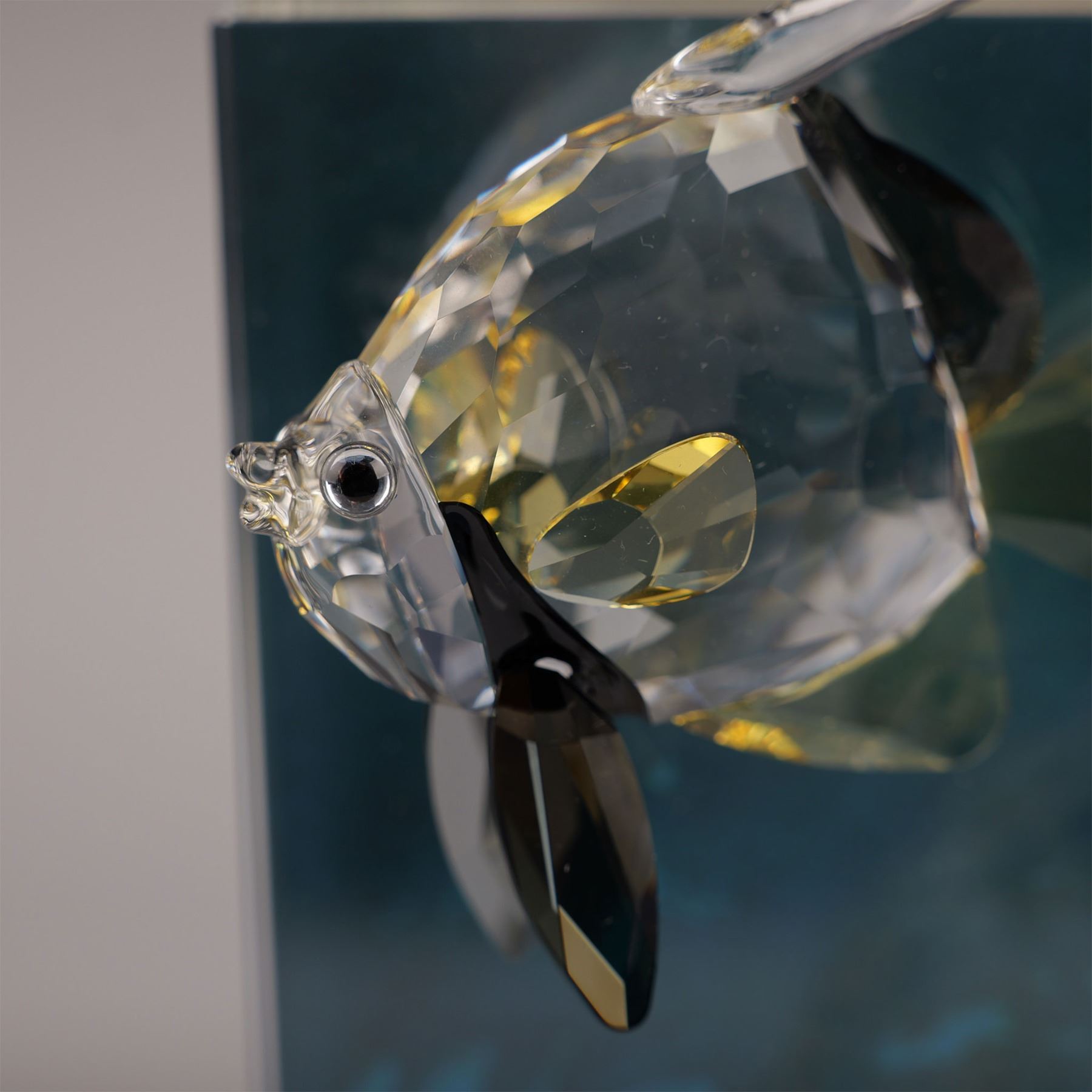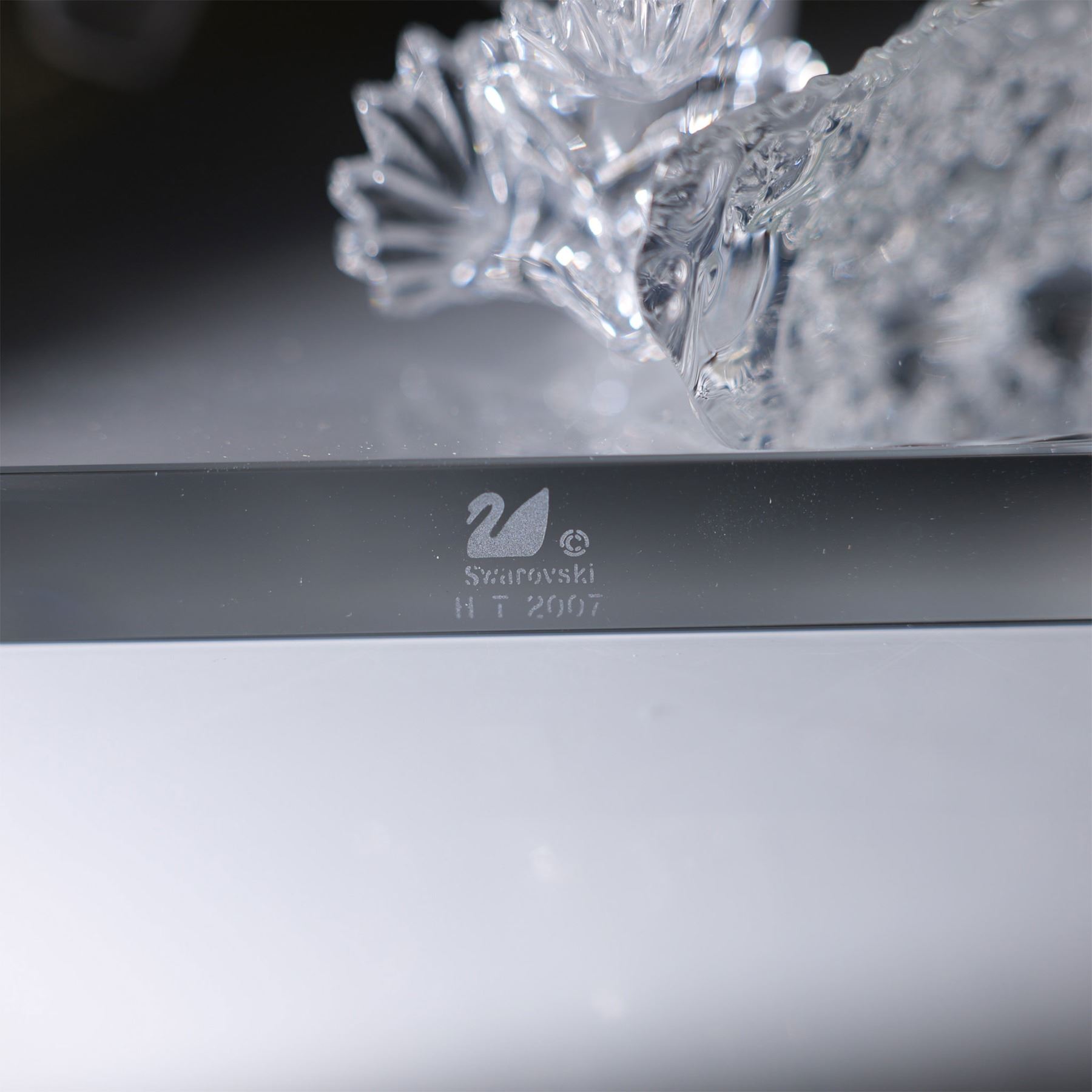 This exquisite Swarovski crystal sculpture, titled Wonders of the Sea: Community, was designed by the renowned artist Heinz Tabertshofer. Released as part of the Swarovski Wonders of the Sea trilogy collection, this masterpiece captures the intricate beauty of the marine world. The design features intricately faceted crystal fish swimming among waves of frosted and clear crystal coral. This piece is a stunning example of Swarovski's mastery in creating detailed, high-quality crystal art. This item has its original box.
