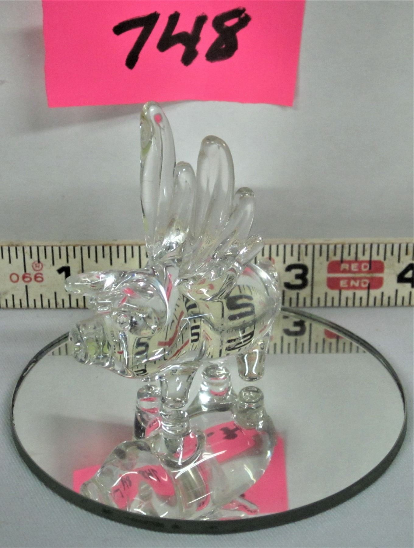 Swarovski crystal 2.5" glass pig with wings 3" circular mirror base