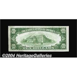 Swarthmore, PA - $10 1929 Ty. 2 Swarthmore NB & TC Ch. # 7193A scarce note from this well known college community. Bright Crisp Uncirculated, fully Choice but for some teller handling visible on the right side. <BR><BR><B>Important notice:</B> Heritage usually auctions material at the rate of 200-250 lots per hour. On some occasions eBay Live bid software or the Internet may not be able to keep up with the pace of the auction. We recommend placing a realistic absentee bid now as insurance to avoid disappointment. Occasionally the auctioneer may eliminate or reject an eBay Live bid, and the auctioneer may also reopen a lot after the close of the eBay live bidding (usually because we missed an audience bid), and may reject your bid even if it shows you as the winning bidder. By bidding via eBay Live, you agree that Heritage may award the lot to another bidder at its sole discretion under the circumstances described above or any other reasonable circumstances. Since eBay bids are not shown to us until we open the lot on the floor, we treat those bids just like floor bids. In most cases the floor responds before the eBay bid is presented to us, due to Internet lag time, so for consistency we have made it a policy that floor bids are always considered first over tie eBay live bids. Also please note that all Heritage lots purchased through eBay Live carry a 20% Buyer's Premium. Please make sure you read the Terms and Conditions before you bid. <BR><BR><B>IMPORTANT ANNOUNCEMENT ABOUT RESERVES:</B> Heritage now divulges all reserves on its web site 7 days before every auction. If you want to know whether the reserve on this lot has been met, and if not, what the reserve amount is, please visit this lot page on the HeritageCoin.com web site, or email: bid@HeritageGalleries.com