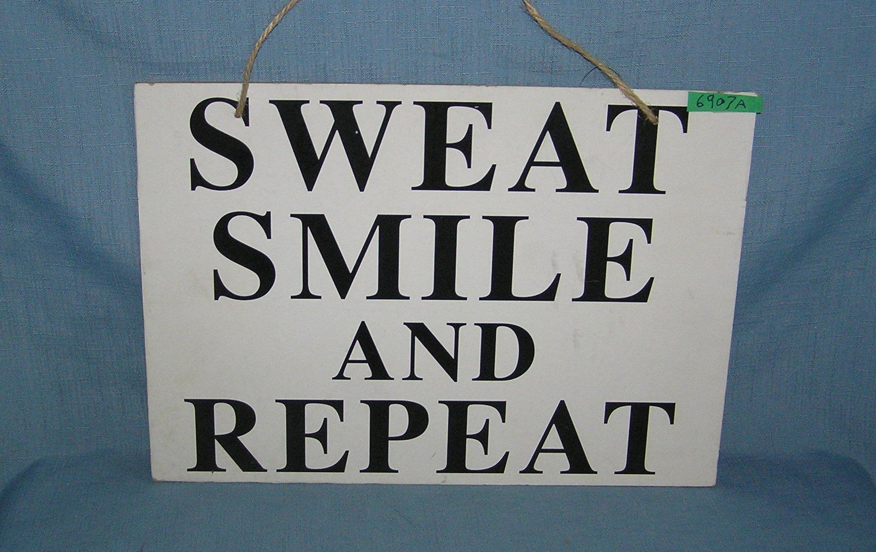 Sweat Smile and Repeat modern inspirational sign on masonite sign est. value $35.00-$40.00