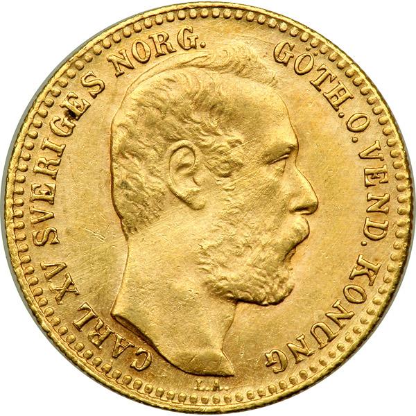 Sweden. 1 Carolin - 10 Francs, 1868. Fr-92; KM-716. Karl XV, 1859-1872. Head right. Reverse: Crowned shield with two values. NGC graded MS-62.