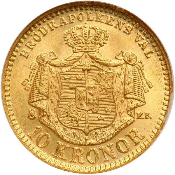 Sweden. 10 Kronor, 1883-EB. Fr-94a; KM-743. Oscar II. Head right. Reverse: Arms. NGC graded MS-66.