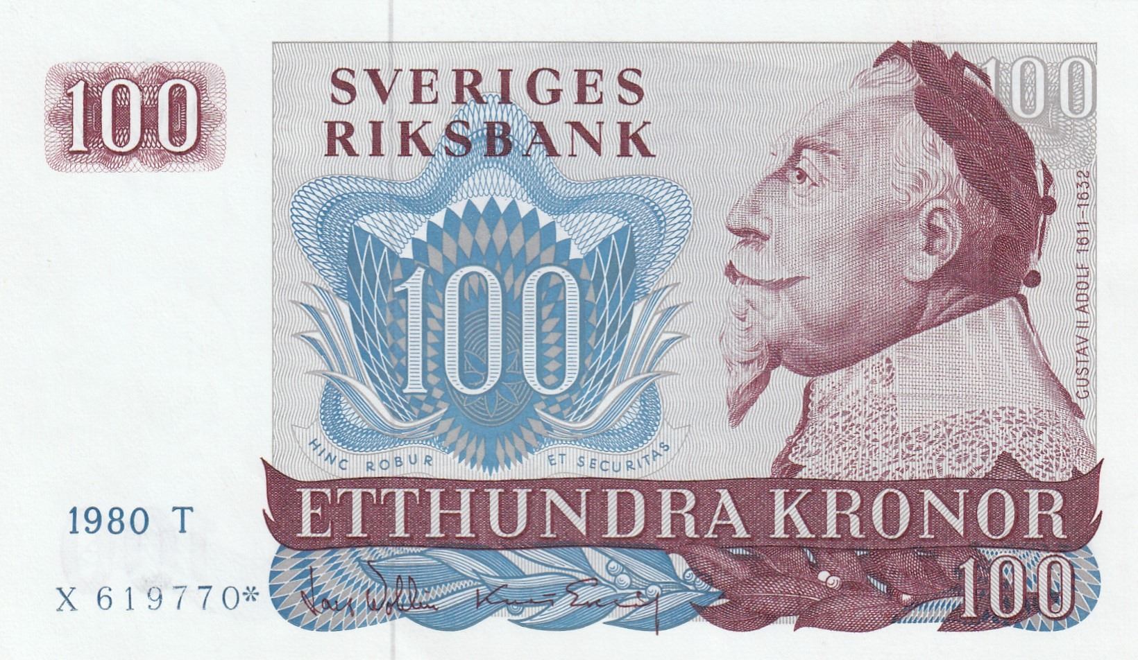Sweden, 100 Kronor, 1980, UNC, p54r, REPLACEMENTbr/serial number: X 619770*