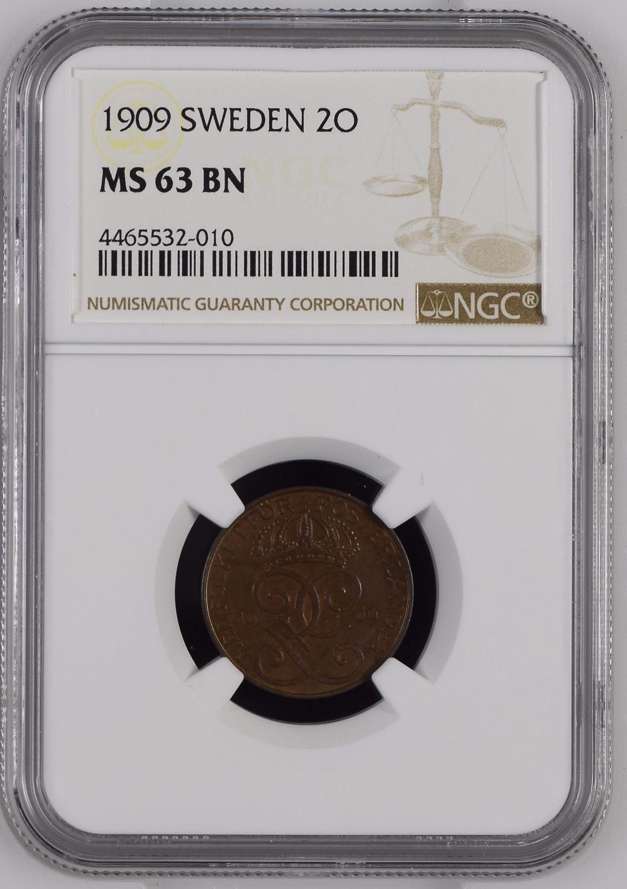 Sweden 1909 2 Ore NGC MS63 BROWN *ONLY 1 GRADED*