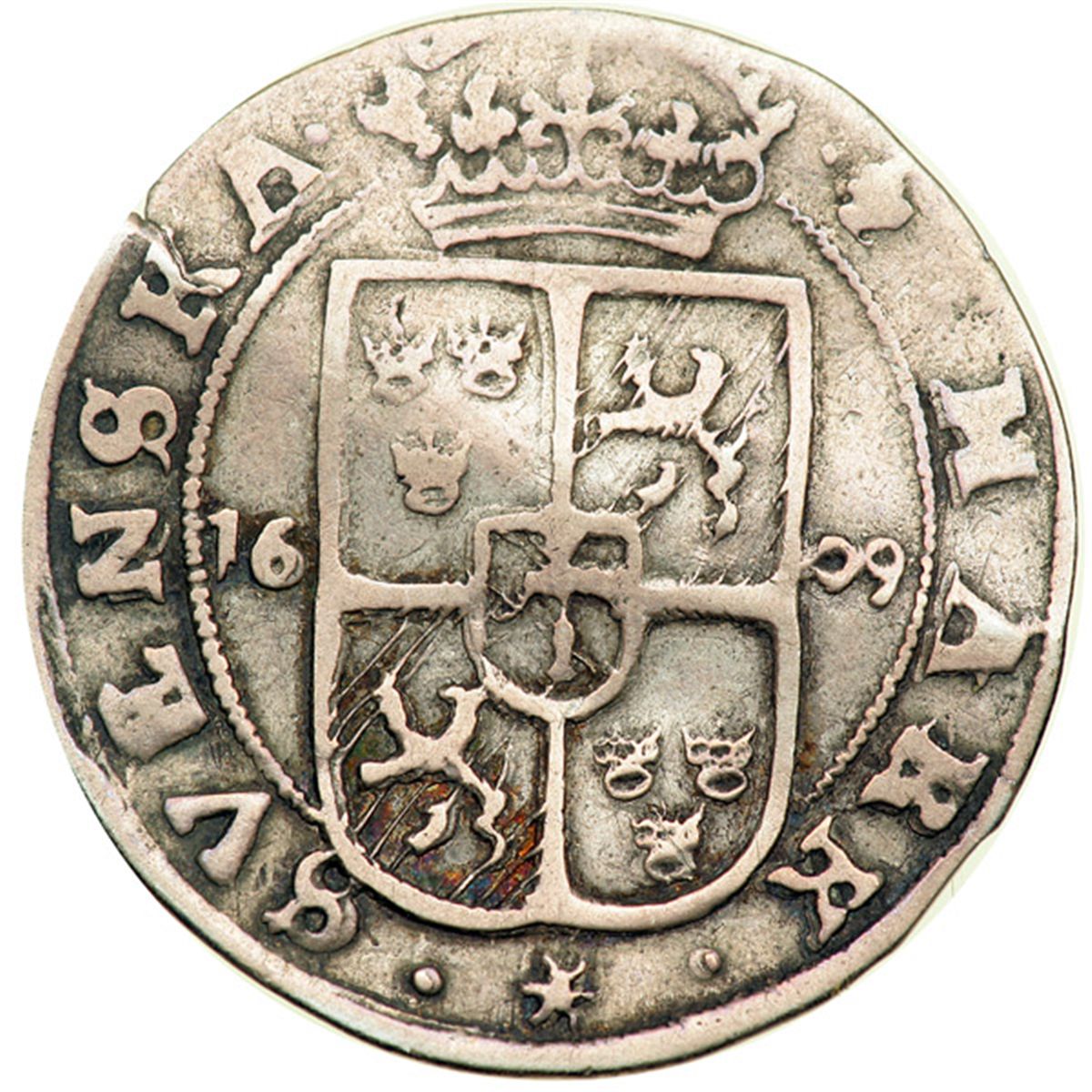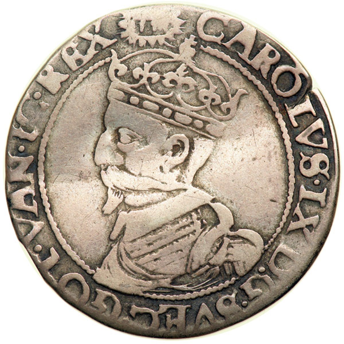 Sweden. 4 Ore (½ Mark), 1609. Ahl-62; KM-21. Karl IX. Crowned bust left. Jehovah above. Reverse: Crowned arms. Crease mark. Very Good.