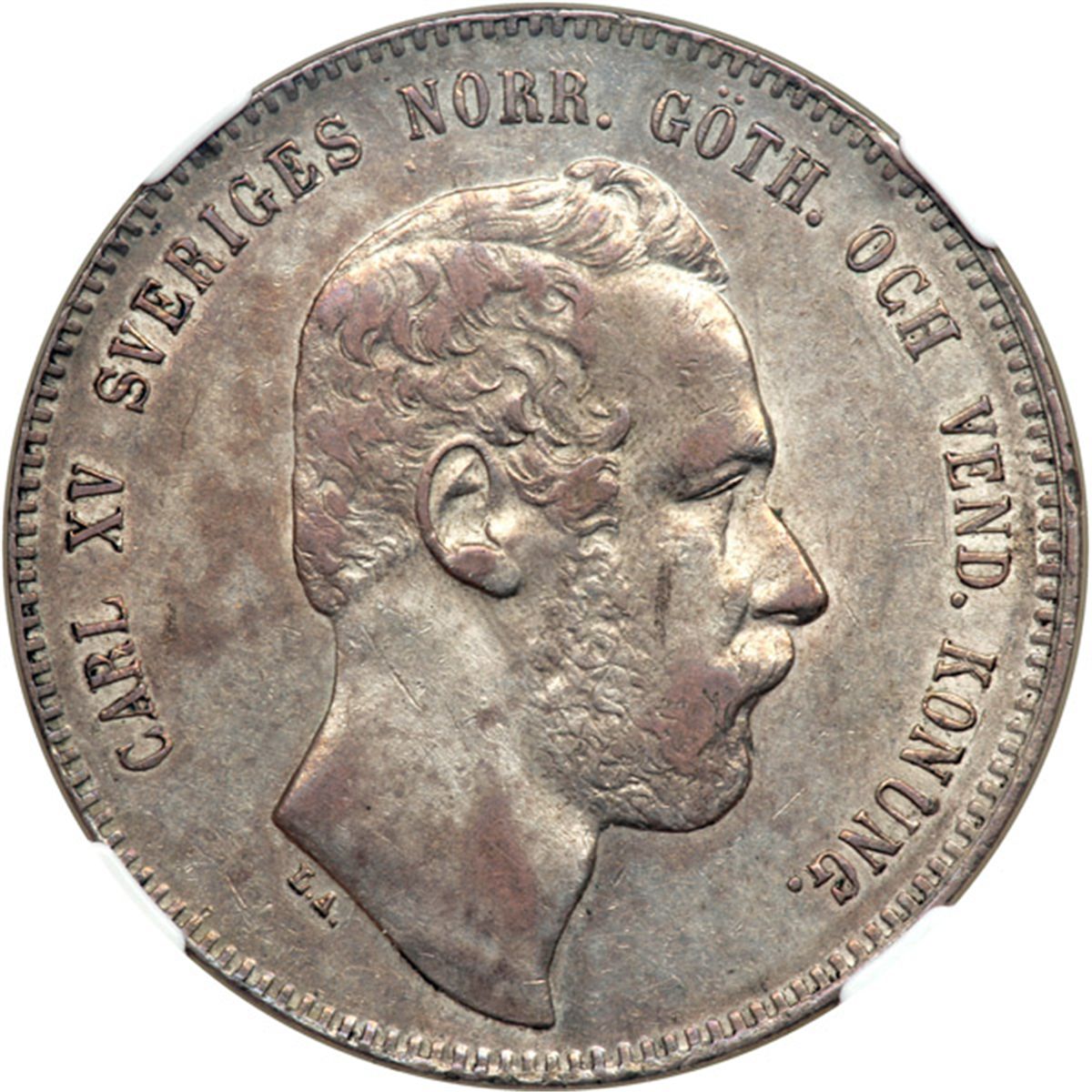 Sweden. 4 Riksdaler Riksmynt, 1869-ST. Dav-356; KM-711; SM-22. Charles XV, 1859-1872. Head right. Reverse: Crowned and supported arms. NGC graded EF-45.