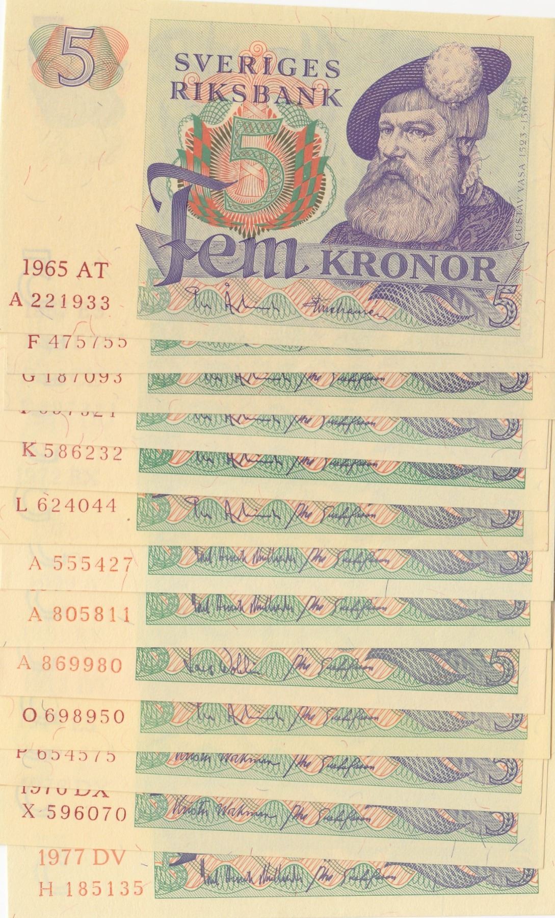 Sweden, 5 Kronor, 1965/ 1981, UNC, p51, (Total 13 banknotes)br/13 banknotes of all different dates