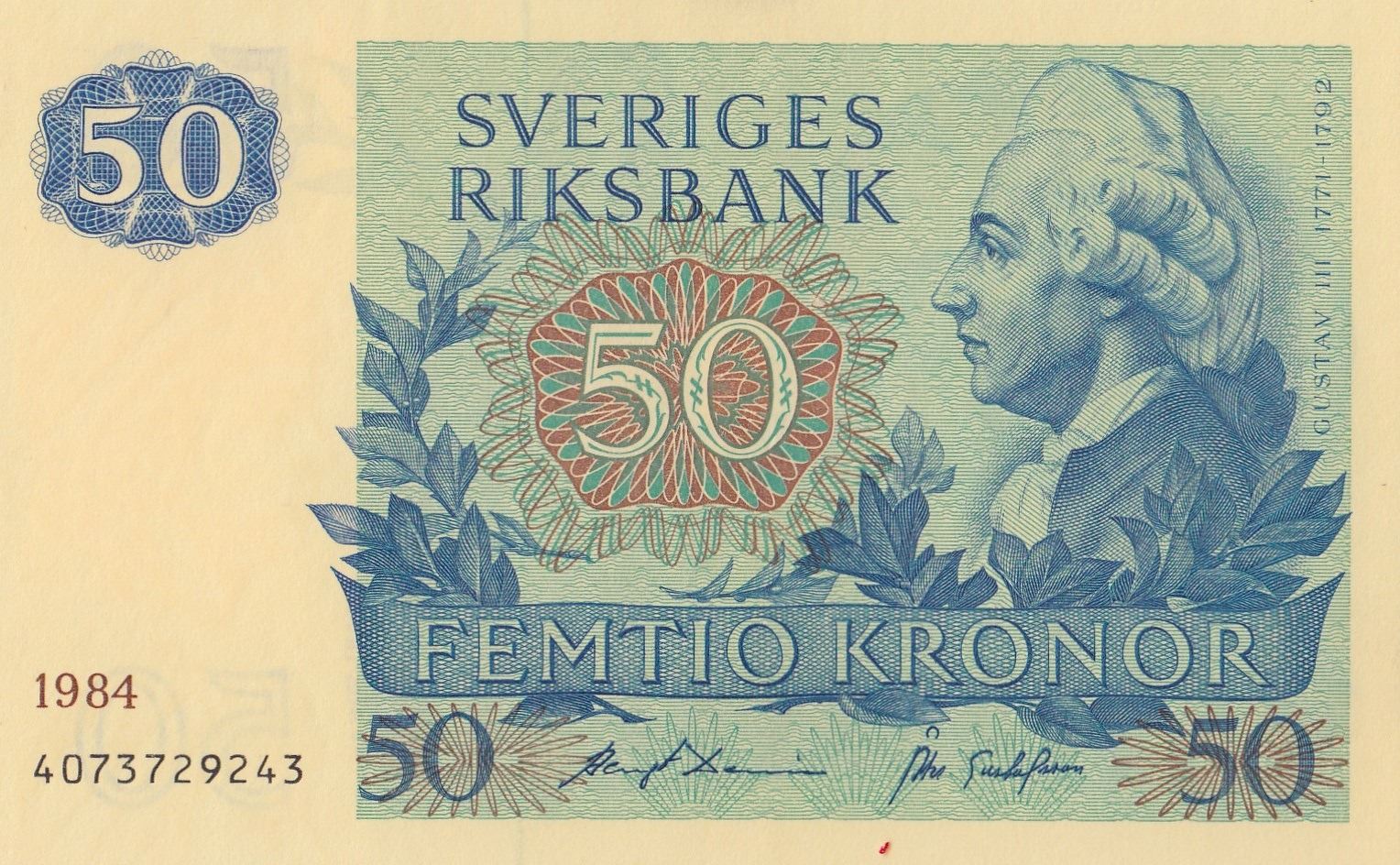 Sweden, 50 Kronor, 1984, UNC, p53dbr/Replacement note, serial number: 4073729243