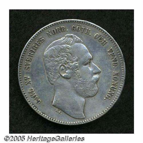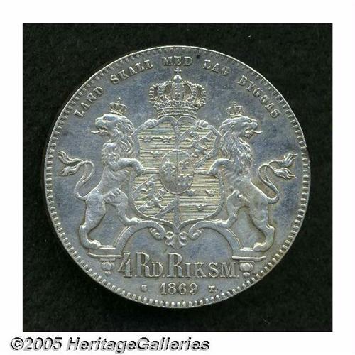 <B>Carl XV 4 Riksdaler Riksmynt 1869, </B></I>KM711, AXF, cleaned but still quite attractive.