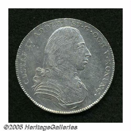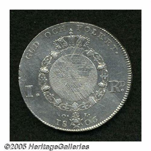 <B>Gustaf IV Adolph Riksdaler 1806-OL, </B></I>KM561, VF-XF, small obverse surface abrasions and noticeable adjustment marks on the reverse.