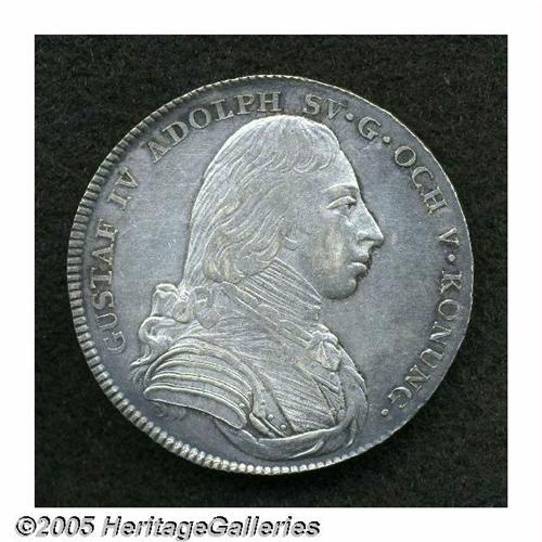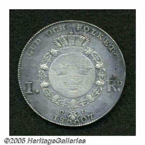 <B>Gustaf IV Adolph Riksdaler 1807-OL, </B></I>KM561, XF, cleaned long ago and now with gray toning, strong details with no adjustment marks.