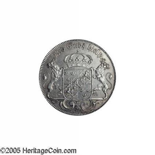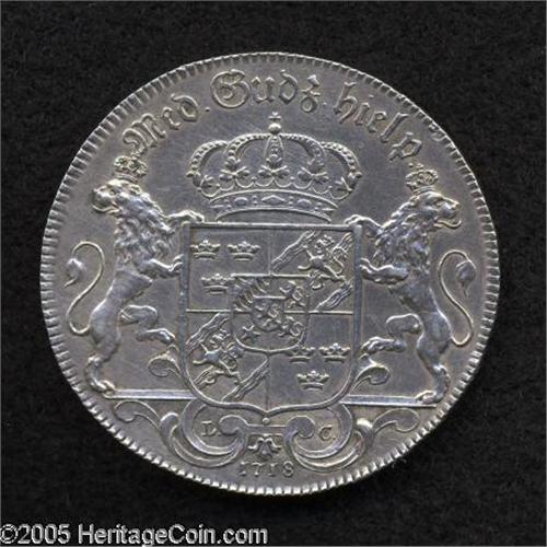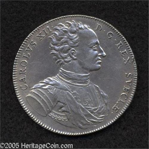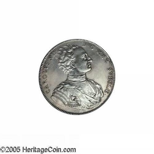 <B>Karl XII Riksdaler 1718 Star in Shield, </B></I>KM362, Dav-1716, Ahlstrom 29a, XF, but polished and with a few small surface scratches. Still quite attractive and a very scarce and desirable type.