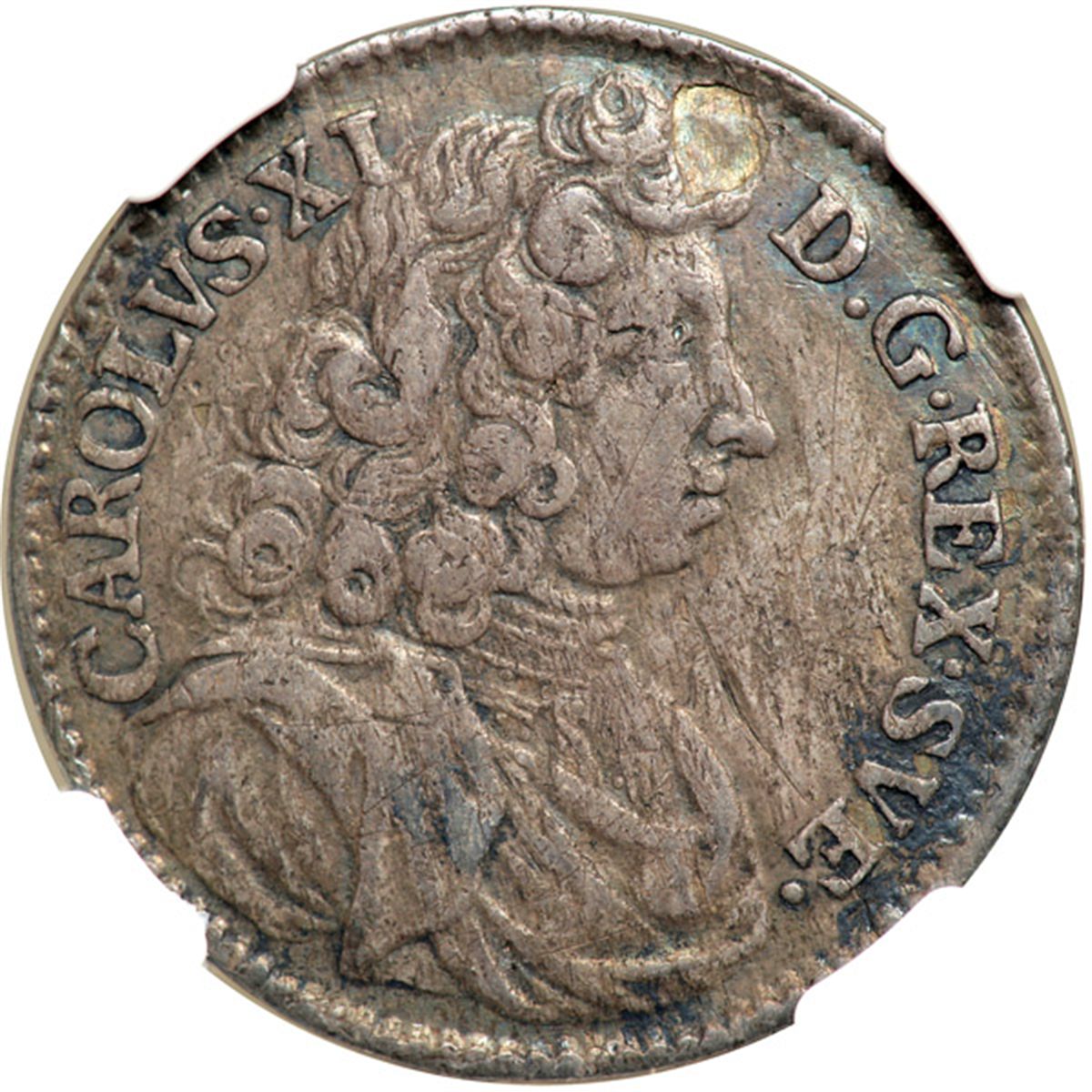 Sweden. Mark, 1687. Ahl-172; KM-295. Karl XI. Bust right. NGC graded VF-35.