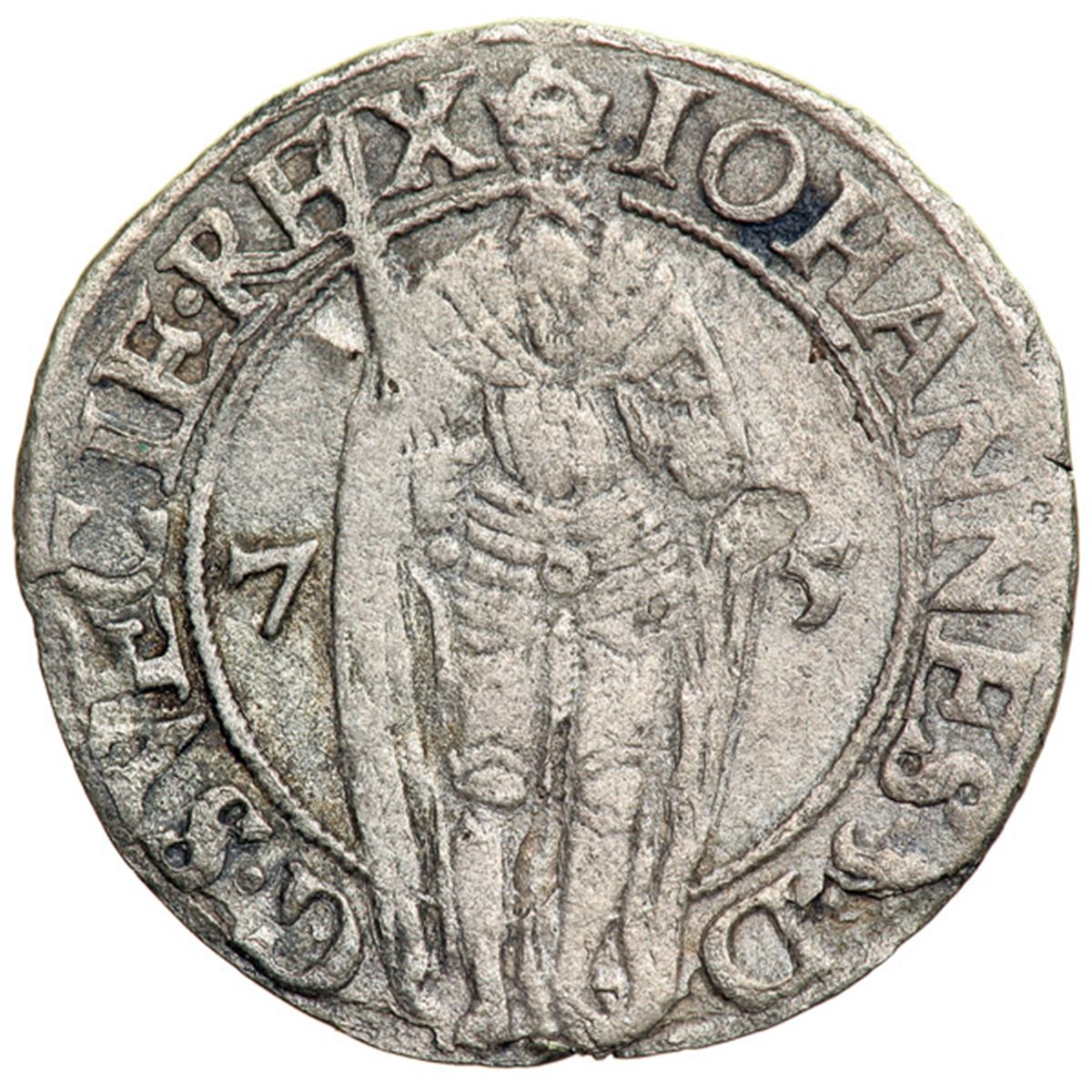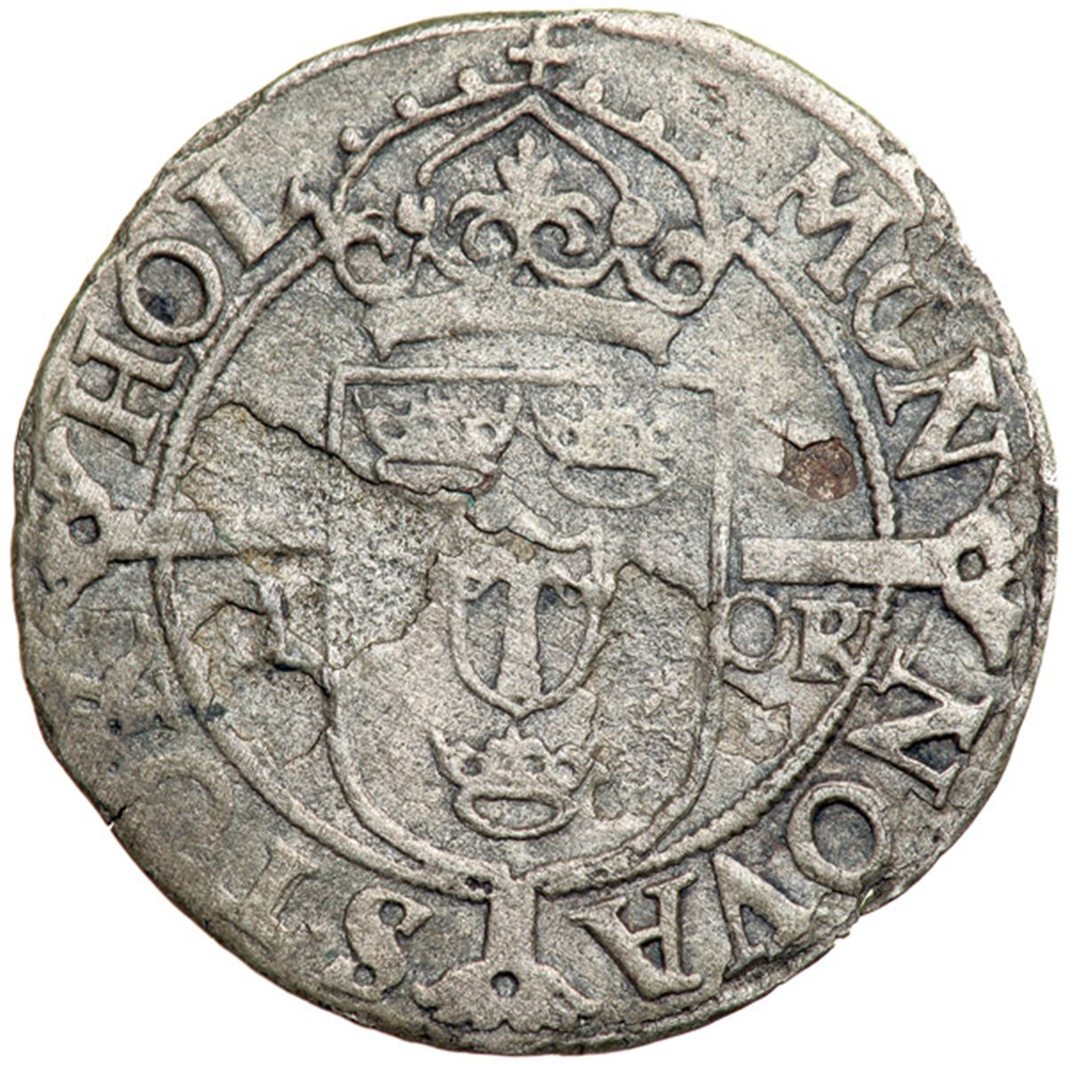 Sweden. Ore, 1575. Ahl-71. Johann III. Standing ruler. Porous surfaces with lamination marks. Fine.
