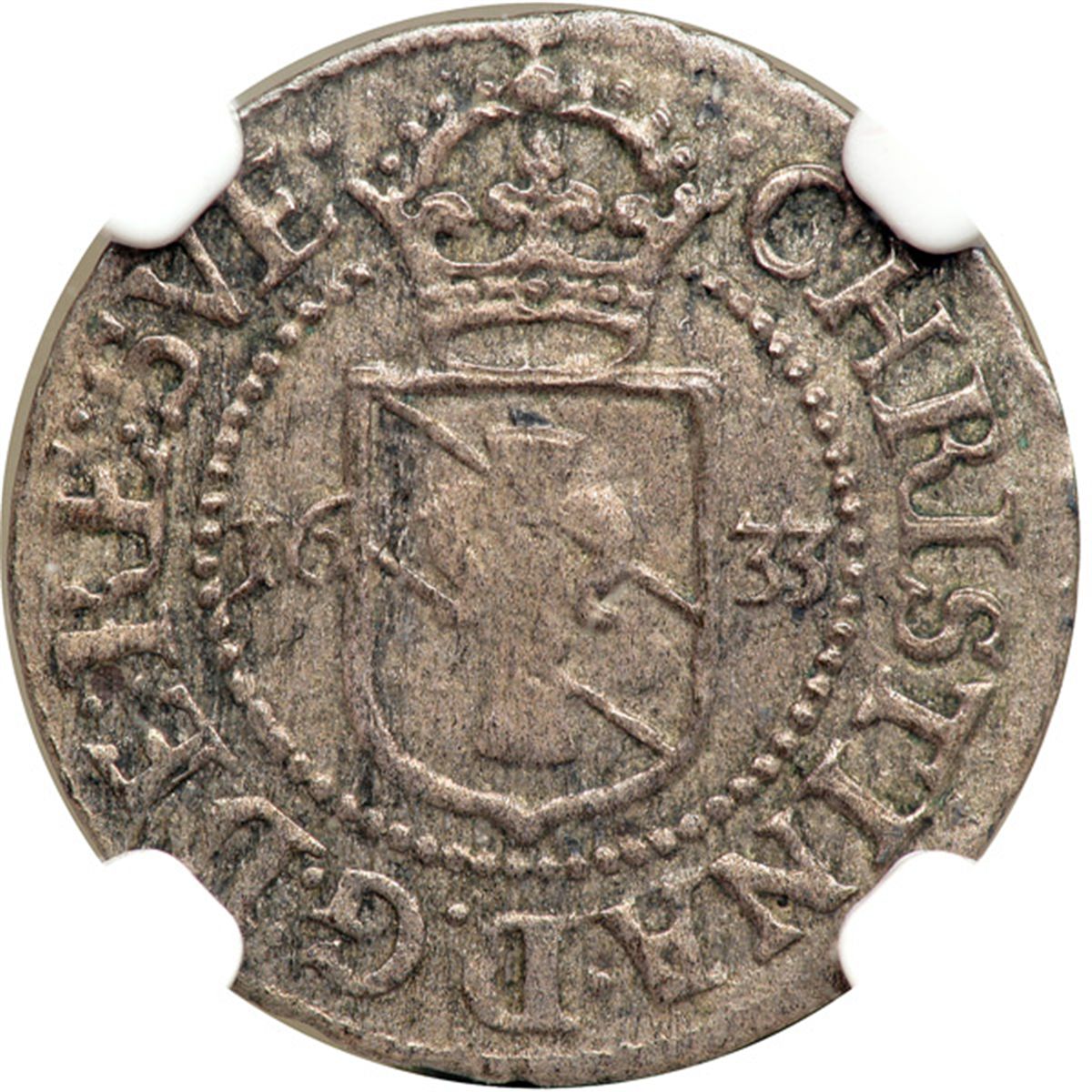 Sweden. Ore, 1633. Ahl-80b; KM-153. Legend, CHRISTINA. NGC graded EF-45.