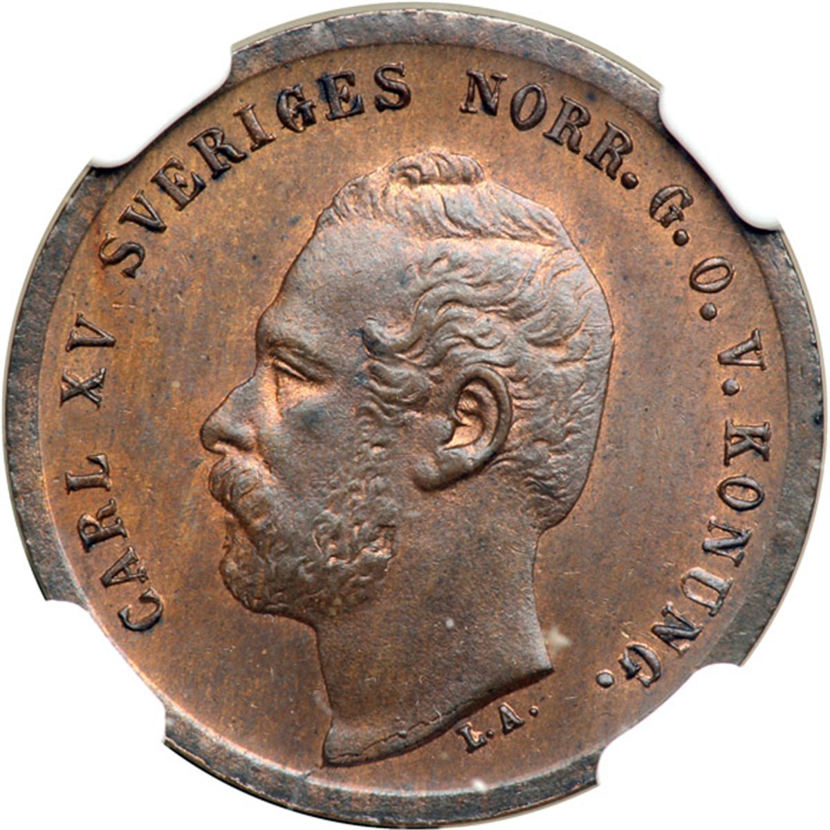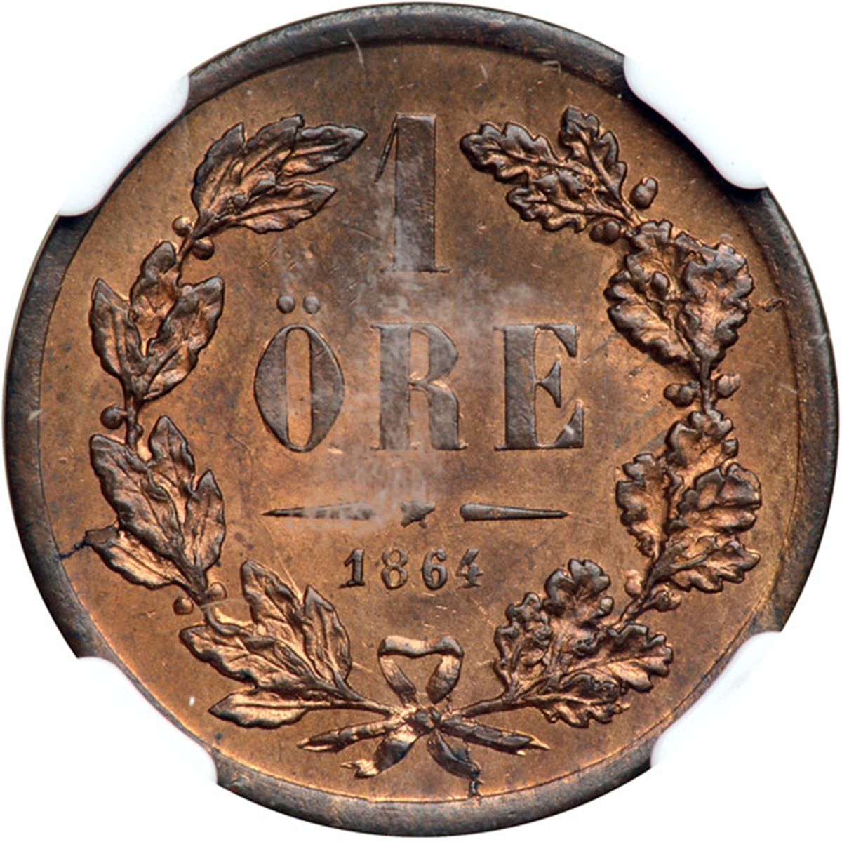 Sweden. Ore, 1864-L. A. Ahl-74a; KM-705. Carl XV Adolf. NGC graded MS-65 Red & Brown.