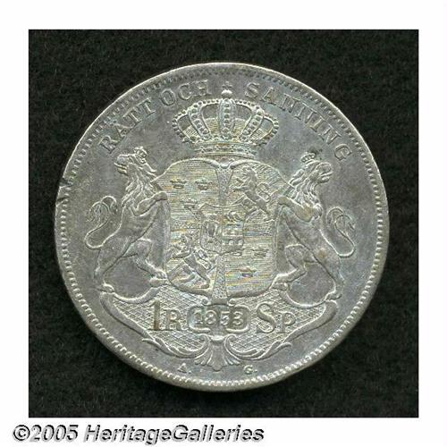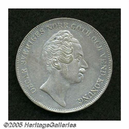 <B>Oscar I Speciedaler 1853, </B></I>KM667, VF-XF, cleaned at one time and now lightly toned, two small rim nicks on the reverse at 9 o'clock.