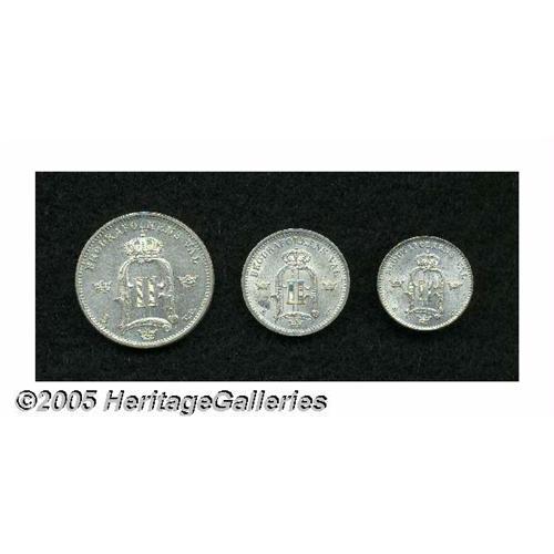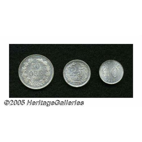 <B>Oscar II - Mint State Trio, </B></I>KM755 10 Ore 1890, KM739 25 Ore 1890, and KM740 50 Ore 1883, all three coins are fully original brilliant UNC with frosty white mint luster. Catalog value in the SCWC is $645.