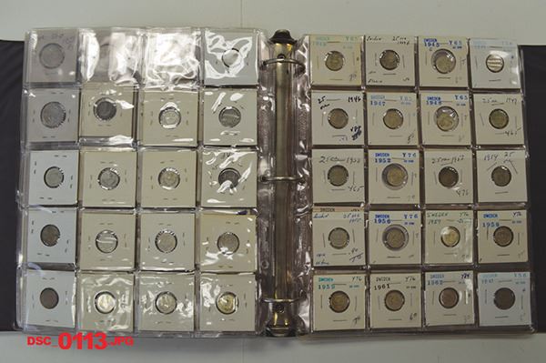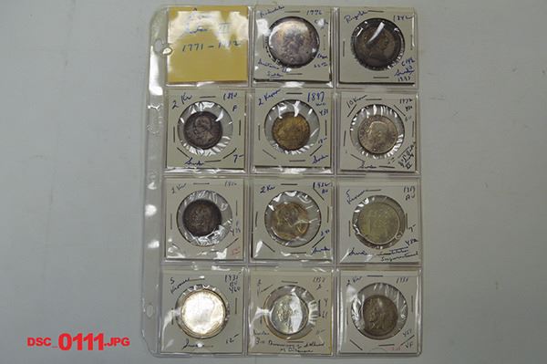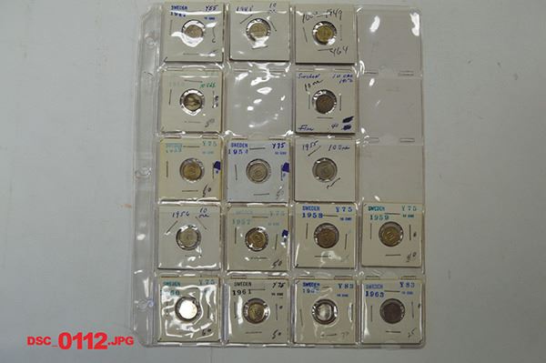 Sweden. Nice group of pre-1800 types, including a Gustavus III 1776 Riksdaler. Another from 1842 is also nice. 2, 5, 10 Kronor from the 1890s thru the 1960s round out the large silver selection. However, there is plenty of silver in the minor types as well. Uncirculated sets of 1980, 1983. Otherwise Early dates seem to be Good to Fine and the later dates Very Fine to Uncirculated. A very full album of over 270 pieces.