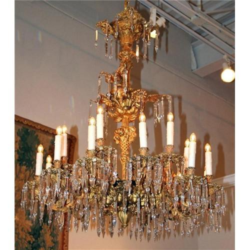 <tr><td>Title:Swedish Dore Bronze and Crystal Chandelier</td></tr>