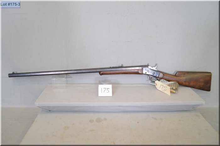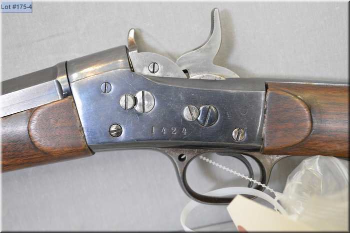 Swedish ( Remington Husquvarna # 1 Rolling Block ) Action dated 1873 .40-90 cal single shot Rolling Block Rifle w/34 1/2" Green Mountain barrel [ Hot acid blued barrel & action, w/ new butt stock & forend, checkered metal butt plate, barrel sights ] Ser # 1424 ANTIQUE NO PAL REQ, c/w 20 .40-90 brass