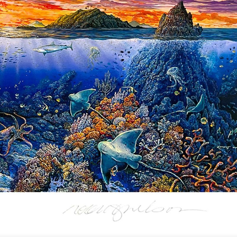"Sweeping Hana Vistas" is a limited edition mixed media on paper by Robert Lyn Nelson, numbered and hand signed by the artist. Includes Letter of Authenticity. Measures approx. 31" x 15" (border), 27" x 10" (image). There may be minor imperfections on the paper (horizontal crease on right part of image) but the piece is in overall good condition.