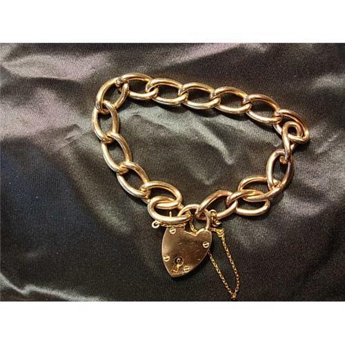 Attractive Circa 1900s 9kt yellow gold curblink bracelet with 9kt gold (hallmarks) heart lock closure in great condition! A Must Have!