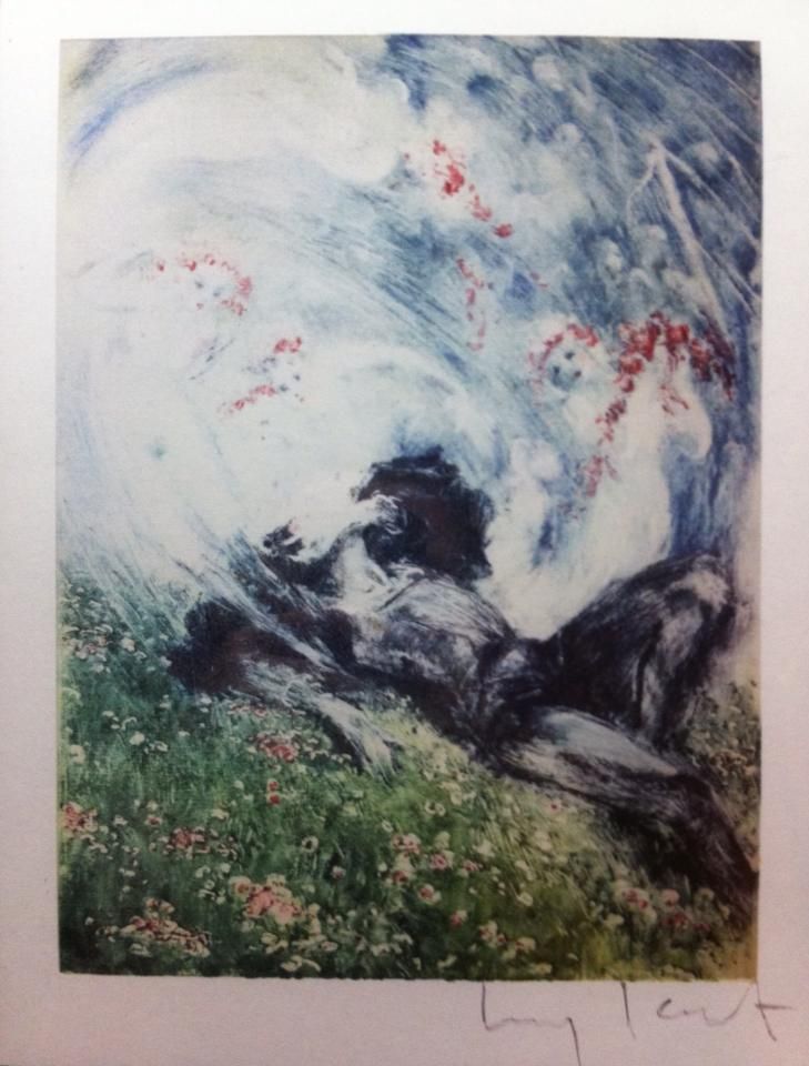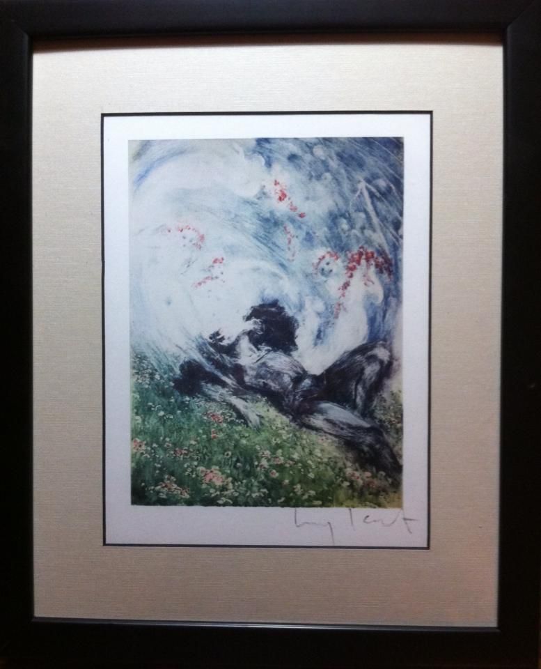 "Sweet Dreams" signed Lithograph by Louis Icart (1890 - 1950). (In reviewing his signatures, it seems this signature may not be authentic.) Framed 14" x 17" Le Faust de Goethe - 1944 The book by Johann Wolfgang von Goethe had illustrations by Louis Icart, "Sweet Dreams" being one of the illustrations.