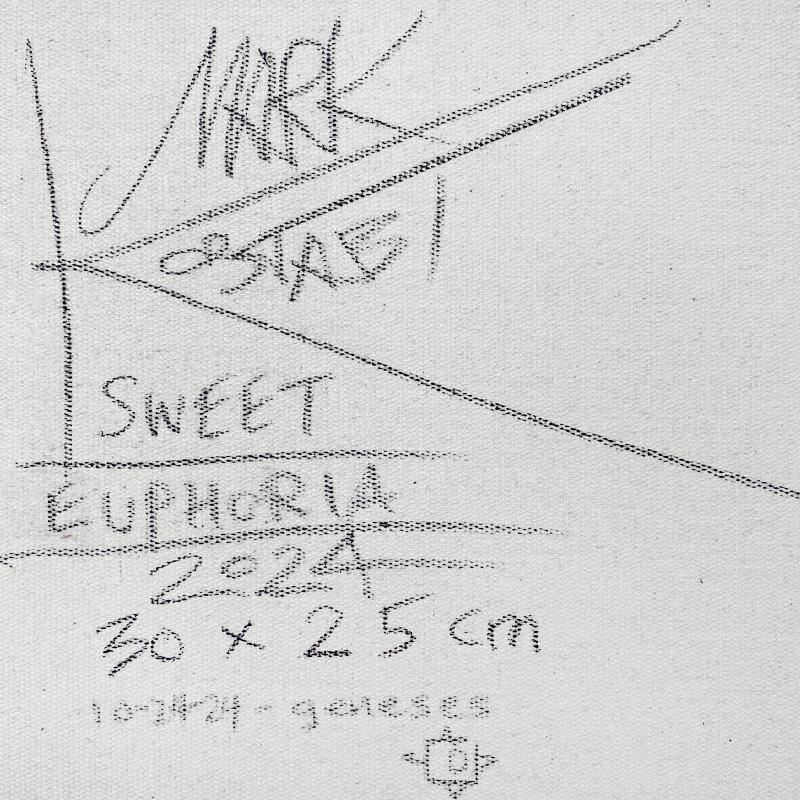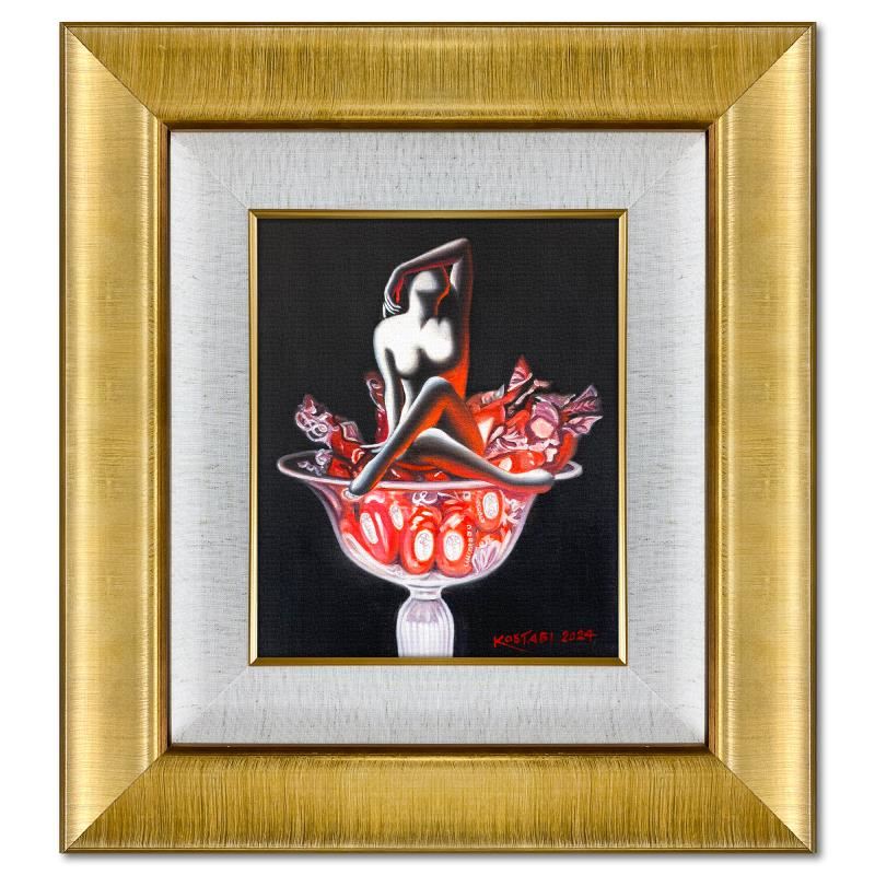 "Sweet Euphoria" is an original oil painting on canvas by Mark Kostabi, hand signed by the artist. This piece comes framed. Includes Certificate of Authenticity. Measures approx. 22" x 20" (frame), 12" x 10" (image). This item requires special handling and may have a longer than usual turnaround.