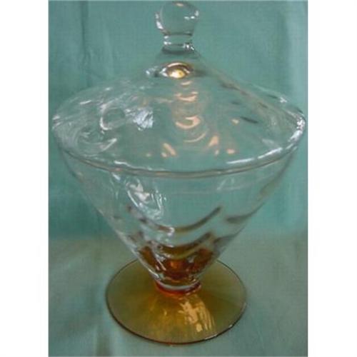 6 inches Tall ** Clear Glass Bowl with Inverted Loops Pattern on a 3 1/4 Amber Foot ** Typical of Early Steuben Glass ** No Chips or Cracks