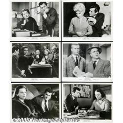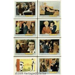 <B>Sweet Smell of Success (United Artists, 1957)</B></I> Lobby Card Set of 8 (11" X 14") Stills (6) (8" X 10"). Sidney Falco, an obsequious New York press agent, tries to get the attention of J.J. Hunsecker, the most powerful columnist in town. Hunsecker, however, has an assignment for Falco before he will put any mention of his clients in his column -- he must disgrace the young jazz musician who wants to marry Hunsecker's sister. Falco manages to frame the musician for marijuana possession, but the betrayal turns around and destroys everyone involved. Burt Lancaster as Hunsecker and Tony Curtis as Falco both give riveting portrayals in this hard-edged film written by Ernest Lehman and Clifford Odets. The lobby card set has minor toning and soiling, three of the cards have corner creases and two have paper clip stains. Very Fine. The stills have corner creases, wrinkles, edge wear and some light toning. Fine. 14 items