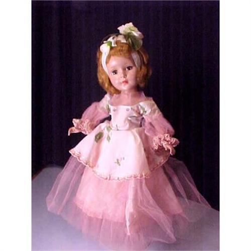 This doll appears to be all original. I am pretty sure her dress and wig are original. Look at the pictures for the shoes and undies as I am not sure what Sweet Sue had under her dresses. I don't think the wig has been cut as it still has curl in the ends. There is some dried glue around the edges of the wig in back if you pull it up. Her body is clean, though the seams show a little dark from age. She has blue sleep eyes and her lips have all the paint. She is not mint but ok for a doll 53 years old.