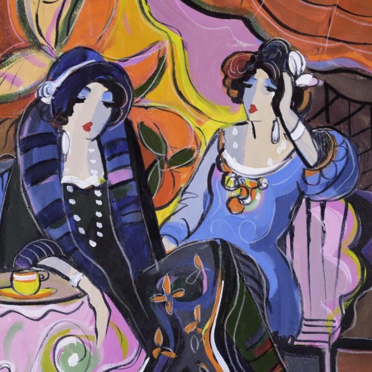"Sweet Talk " is an original acrylic painting on canvas by Isaac Maimon, hand signed by the artist and includes a certificate of authenticity. Measures approximately 30" x 24"