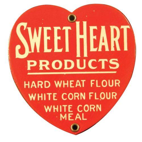 Sweetheart Products Flour and Corn Meal Die Cut Porcelain Sign. Mint condition. 5 X 5 inches.